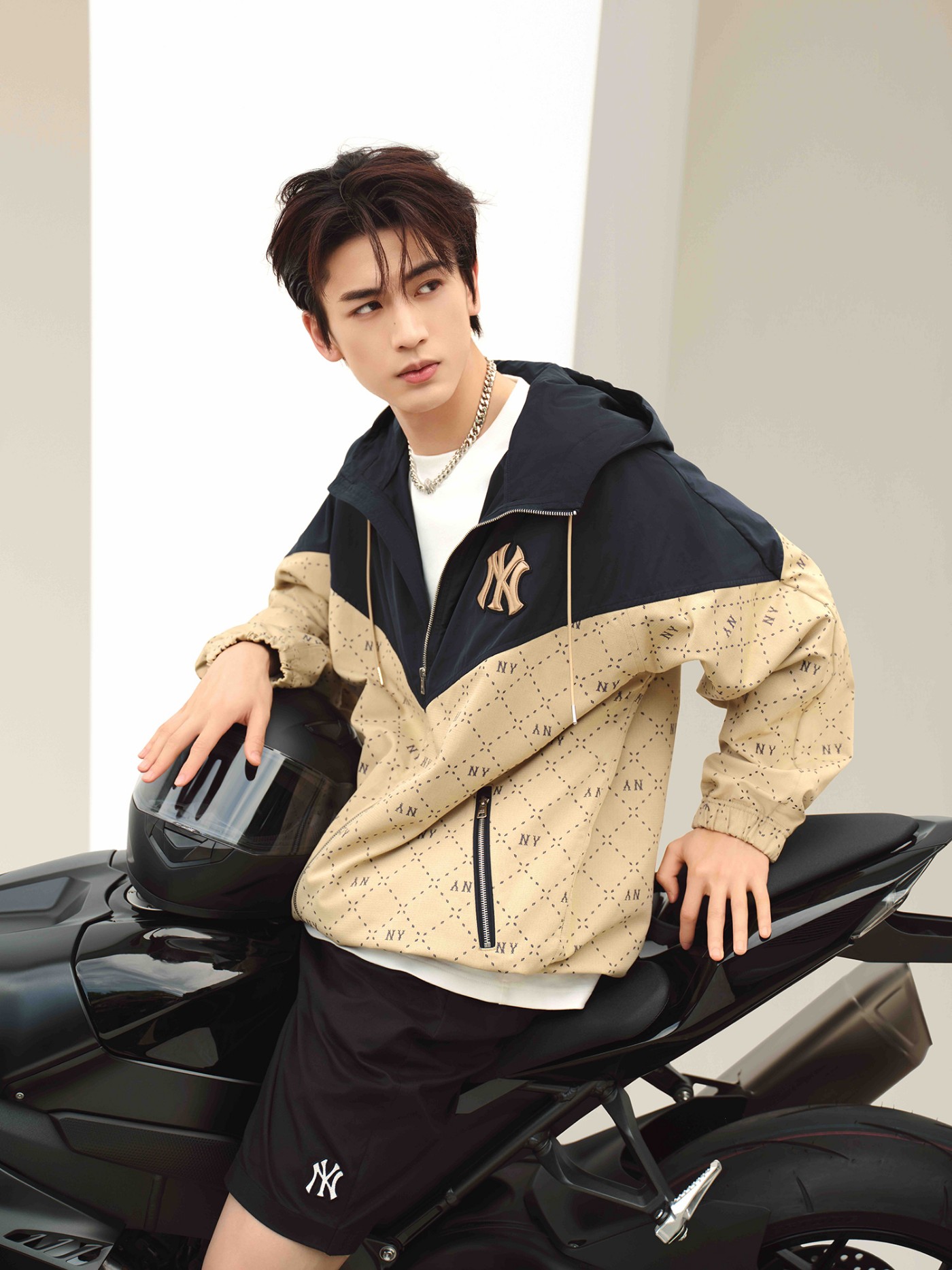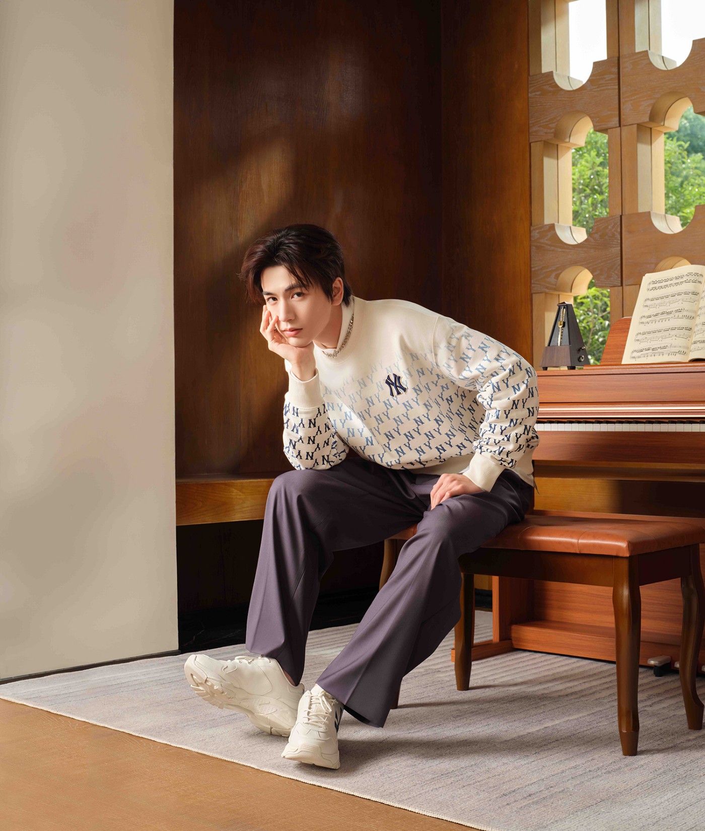 MLB 潮流品牌大使张凌赫身着渐变老花卫衣,将渐变色彩与经典队标巧妙融合,以富有个性的秘境蓝渐变色调打造奢感与前卫并存的秋季百搭单品。