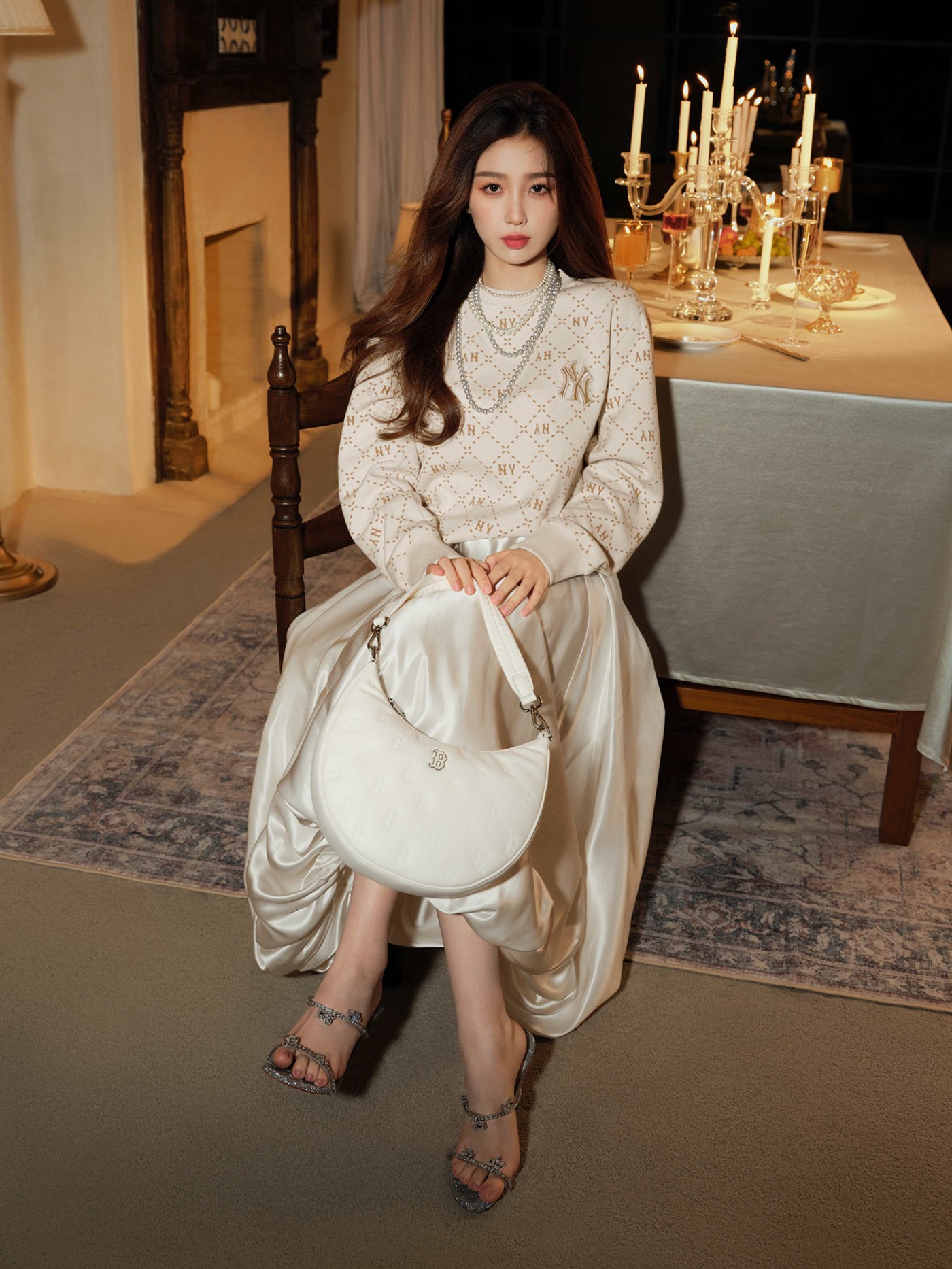 其中 MLB 品牌钻石老花卫衣,运用全新设计手法与流畅剪裁打造修身廓形。MLB 潮流品牌代言人虞书欣,穿着燕麦色钻石老花卫衣搭配 MLB 全新云朵腋下包与珍珠项链,尽释奢华风潮。