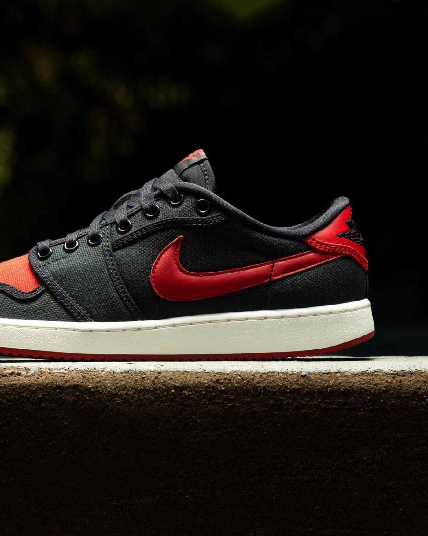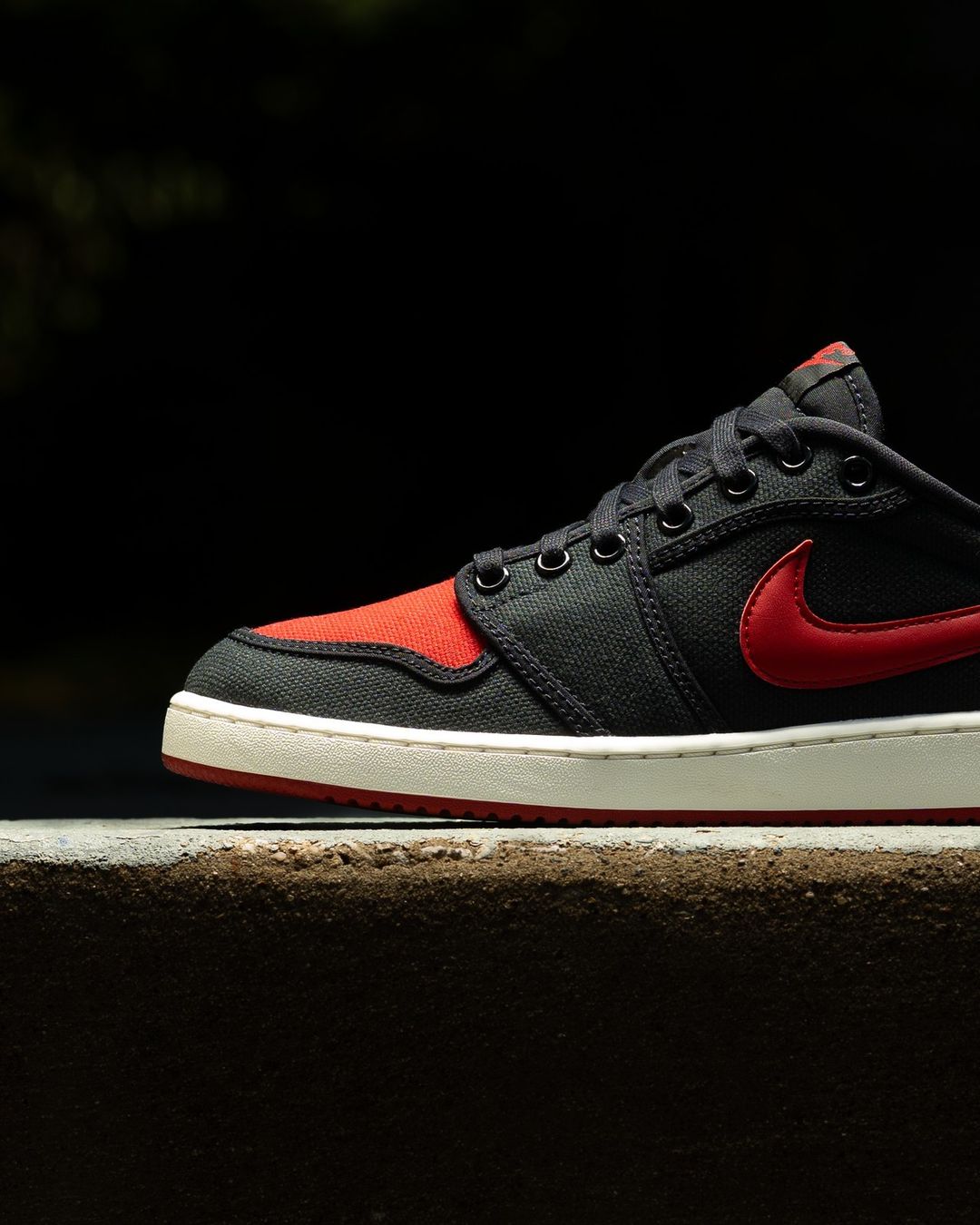 整双鞋延续 Air Jordan 1 KO 造型,黑红双色组成的鞋身也将最经典的「禁穿」配色呈现。