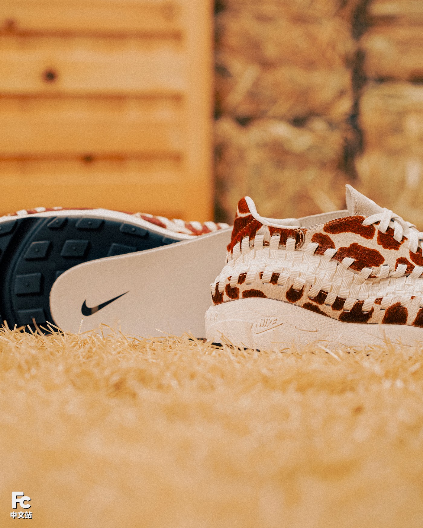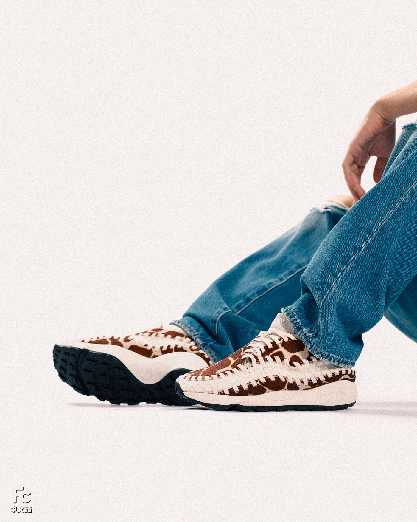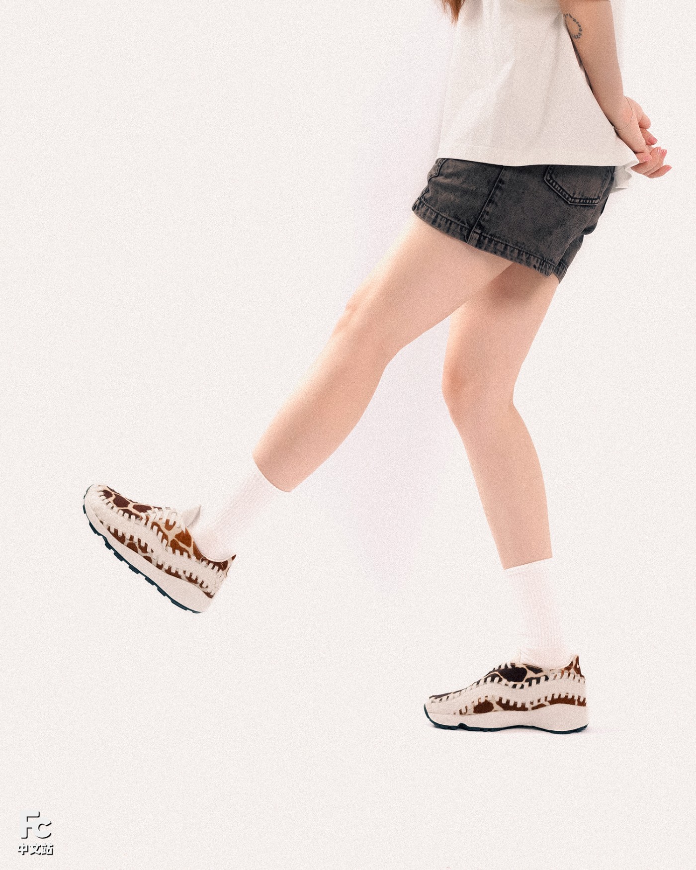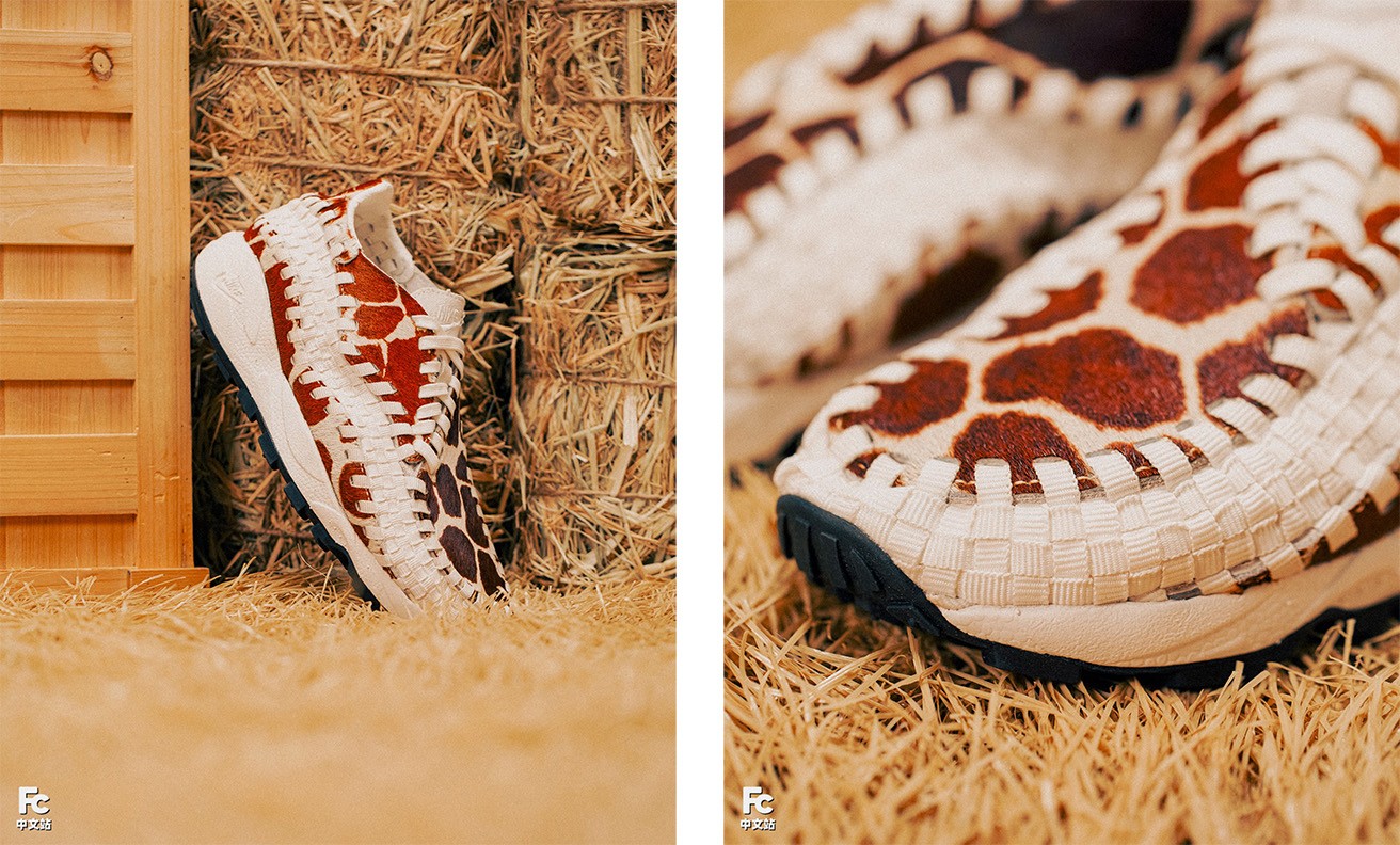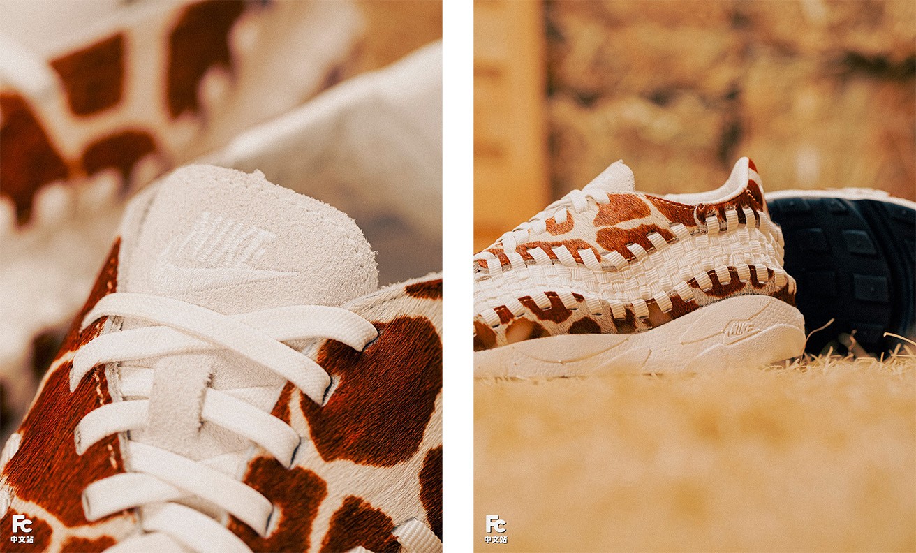 整体以「长颈鹿」为灵感设计,棕色和白色妆点,跟当年天价的「豹纹」Nike Woven Chukka 颇为相似。