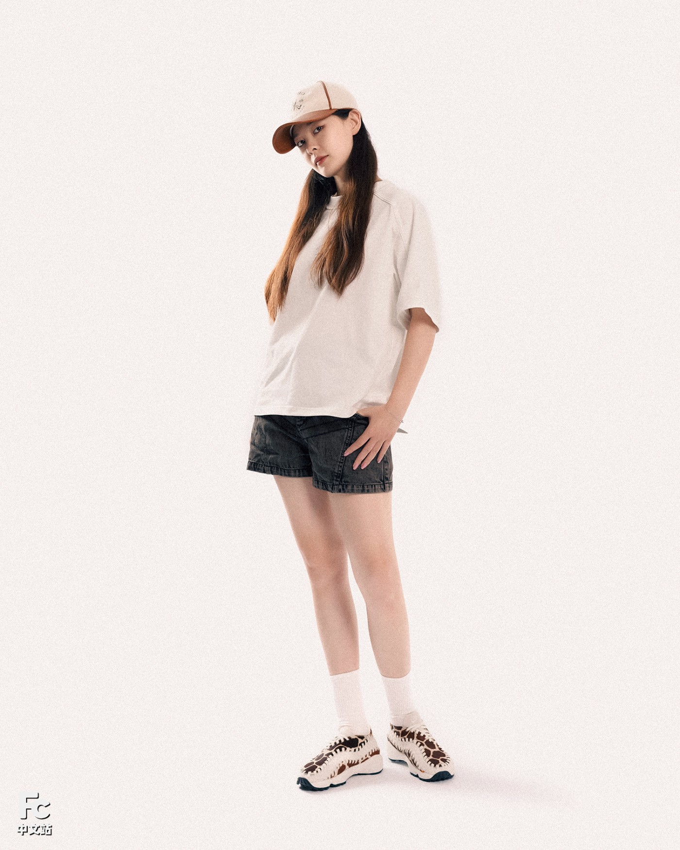 小姐姐选择一条牛仔短裤进行搭配,低帮的设计更加显腿长。