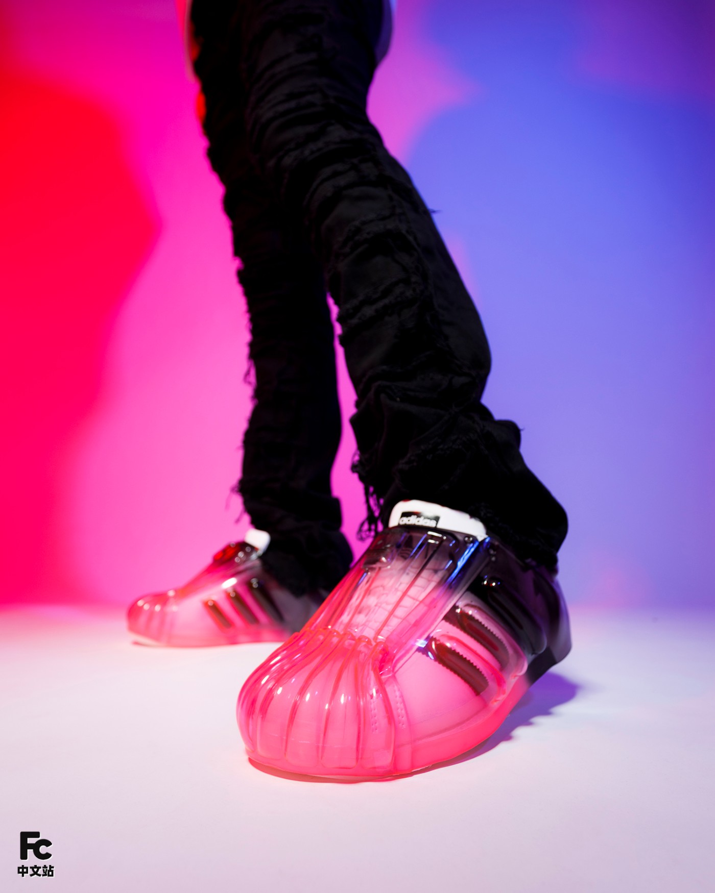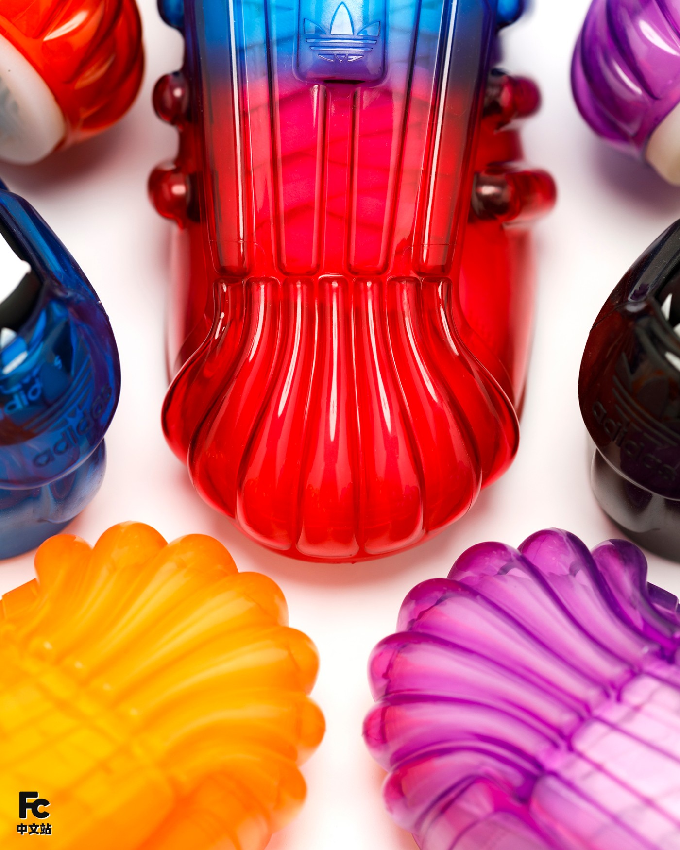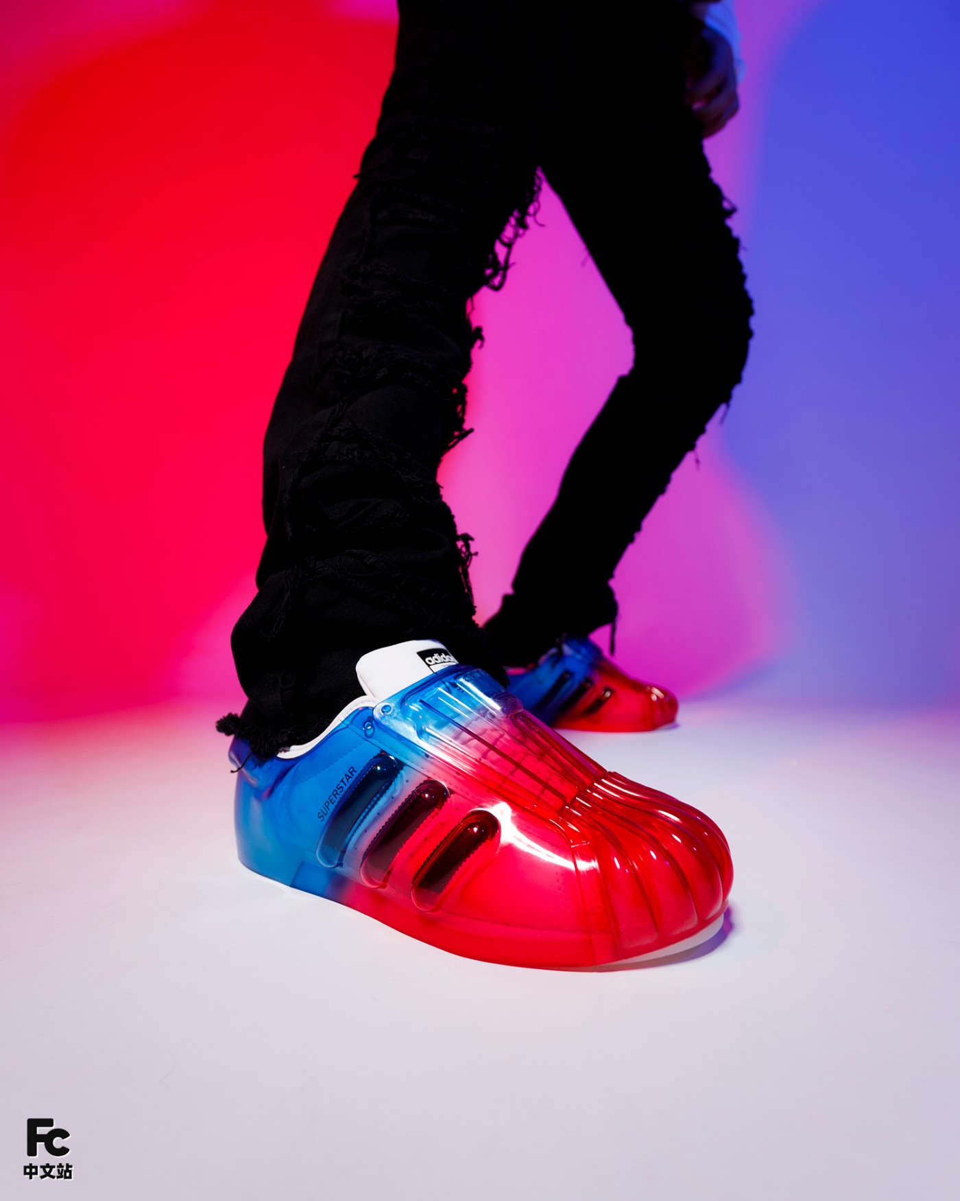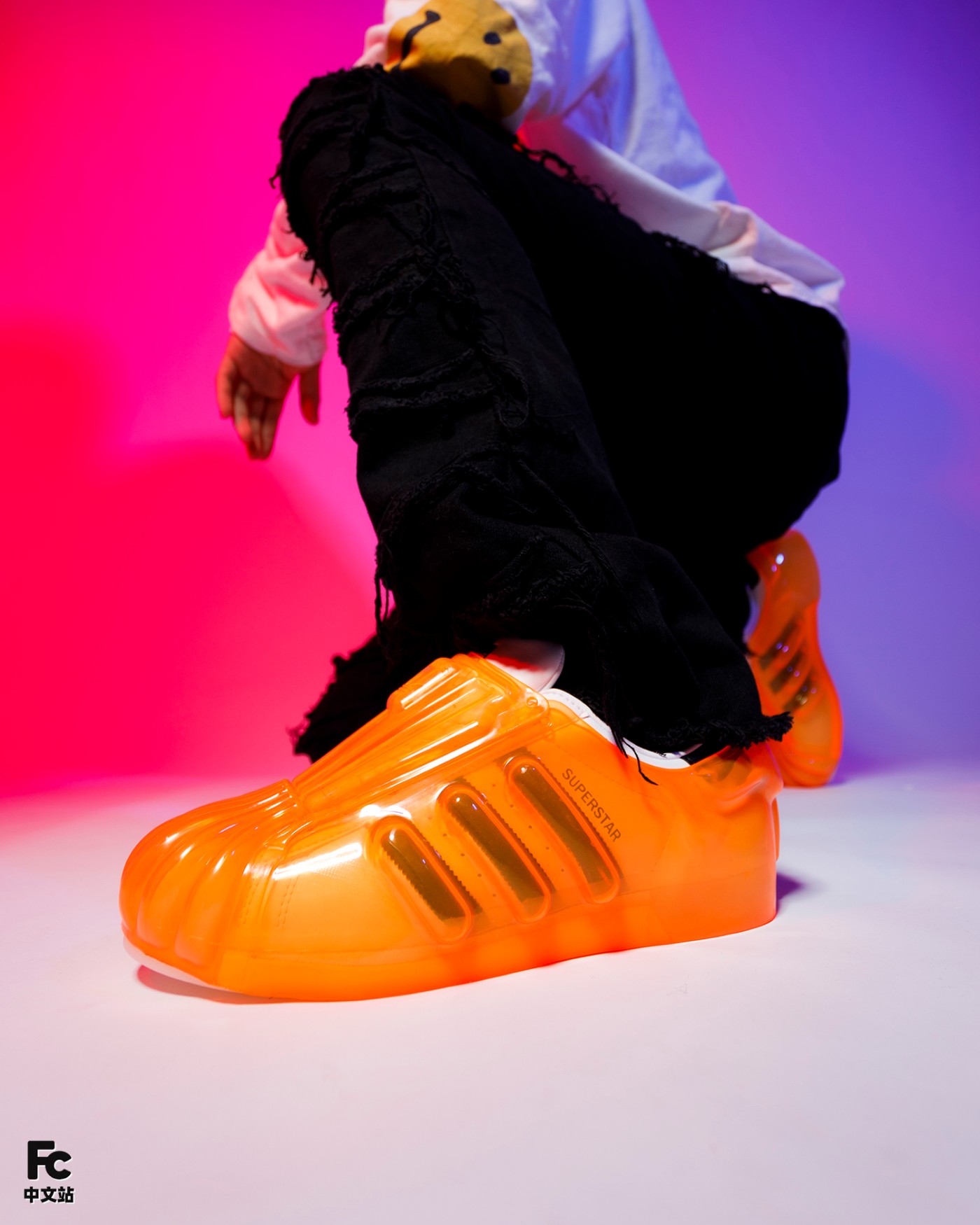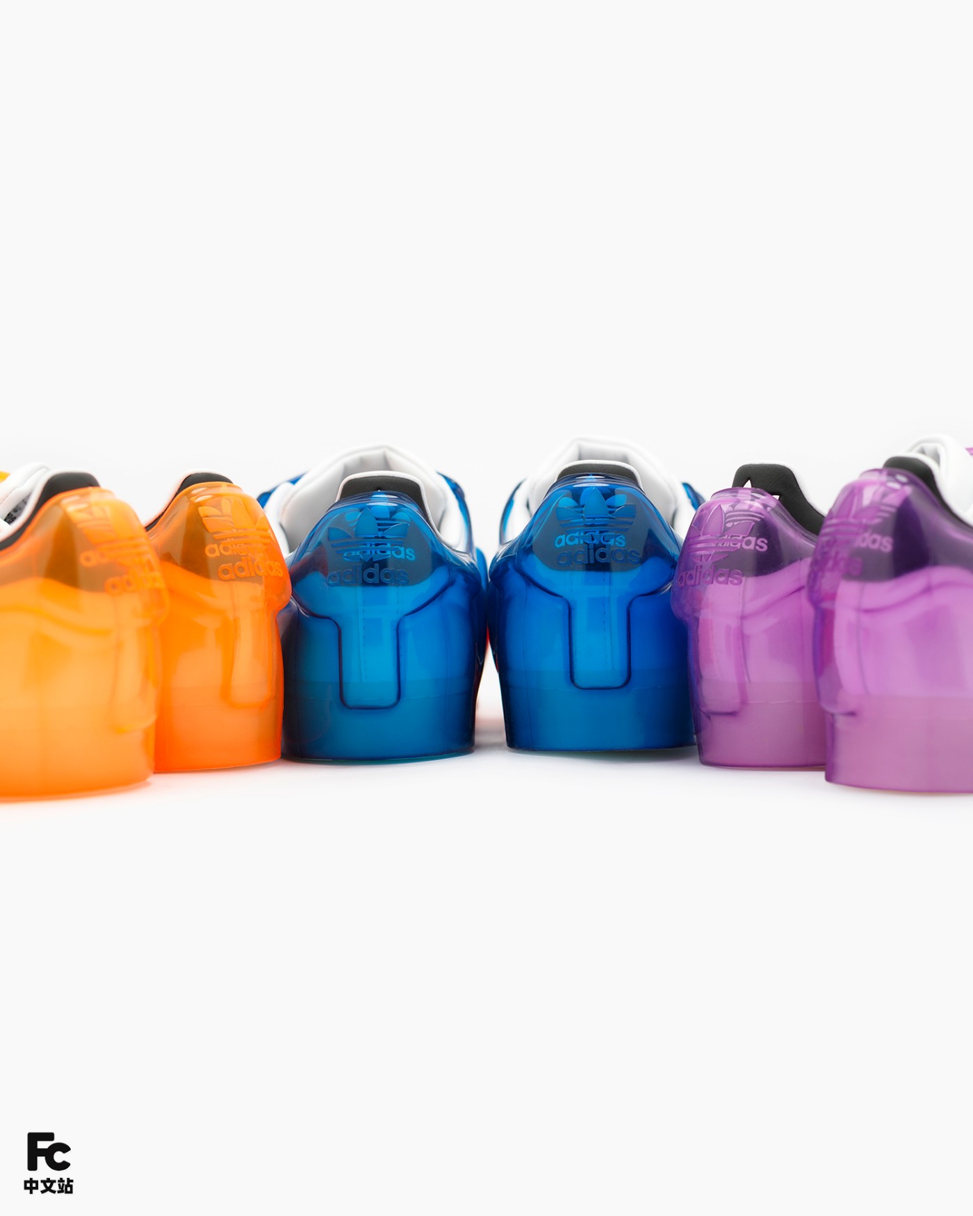 首先最有意思的就是基于 OG 款 Superstar 为核心,通过追加半透明果冻彩色外壳的形式,带来前所未见的新颖造型。