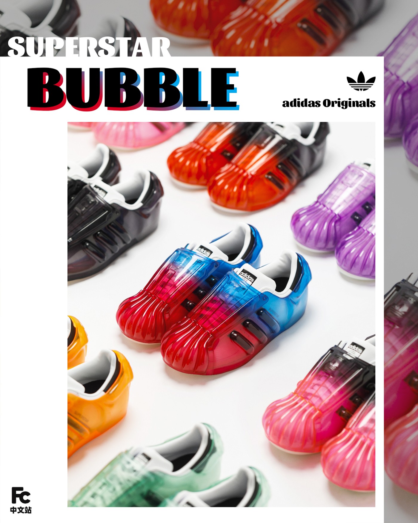 而近期 adidas Originals 又带来新的尝试「果冻贝壳头」Superstar Bubble。