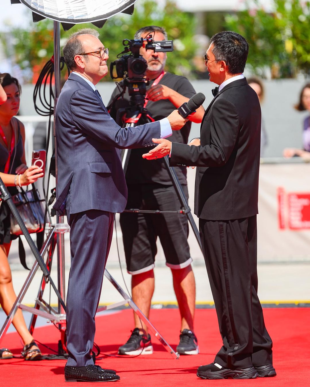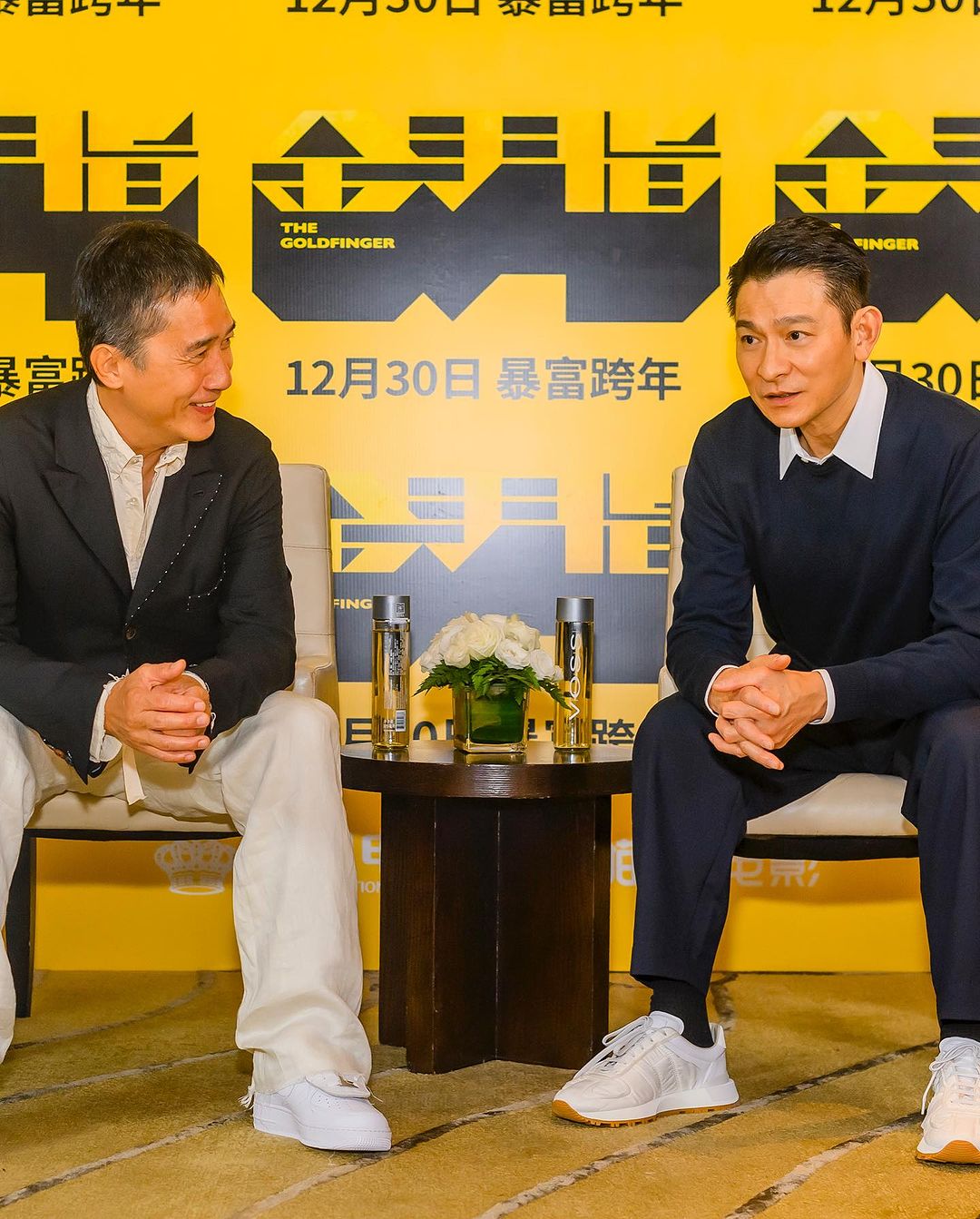 刘德华穿了 Maison Margiela 运动鞋,梁朝伟则上脚了带盖的 Air Force 1。