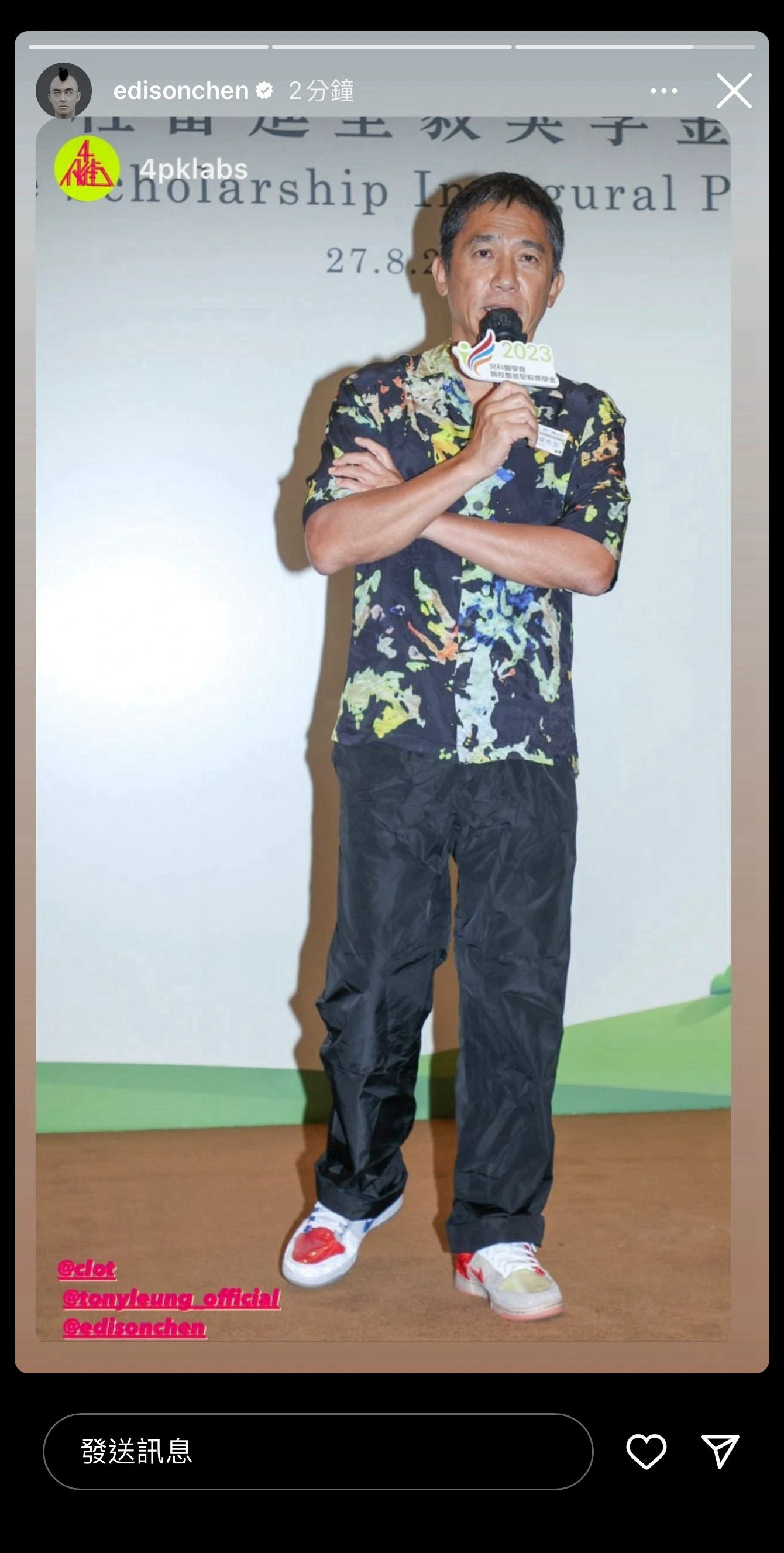 前几天冠希同样快拍中晒出梁朝伟穿 What The?CLOT 的照片,真没少帮 CLOT 带货。