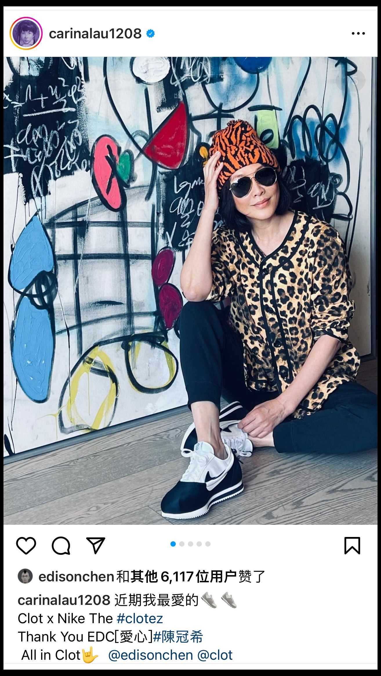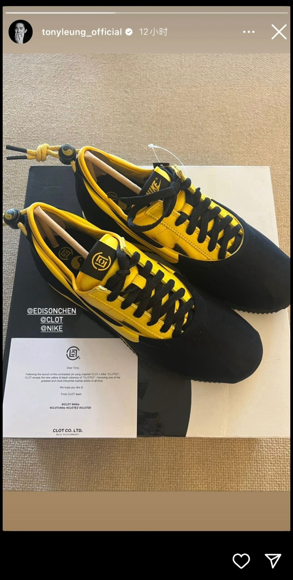 上脚 CLOT x Nike Cortez 的时候还表示是近期自己的最爱。