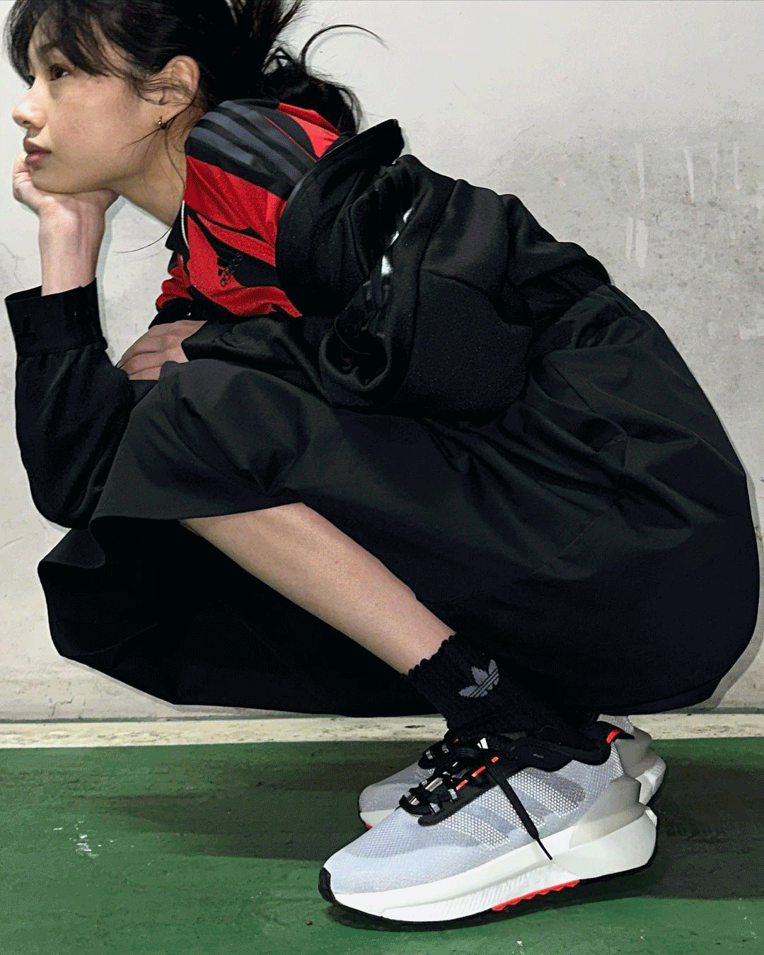 本身是模特出身的原因,运动感十足的 Ultra Boost、Avryn 也是信手捏来。