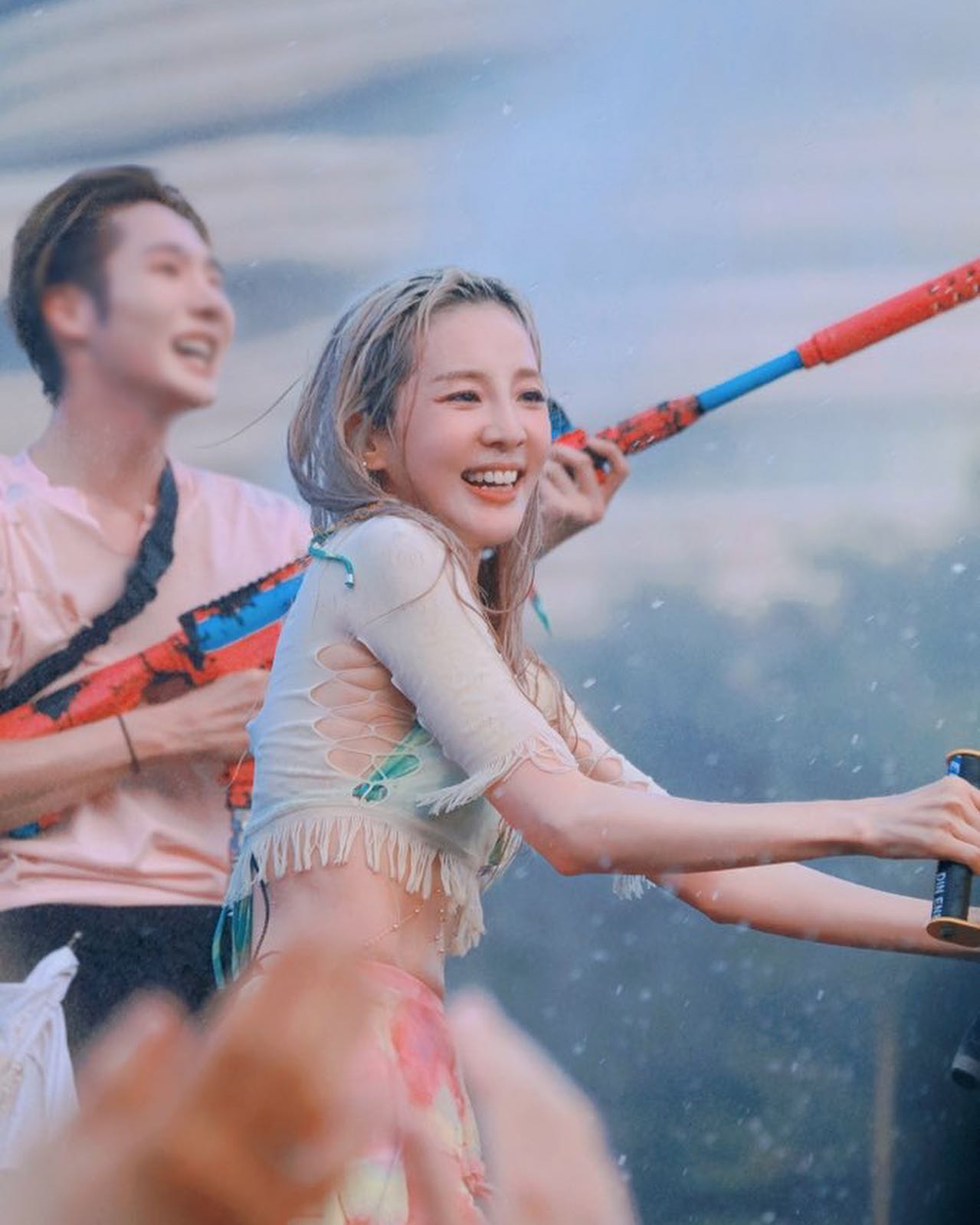 在菲律宾参加音乐节可以说是火力全开,跟台下粉丝亲切互动,还调皮的玩起滋水枪。