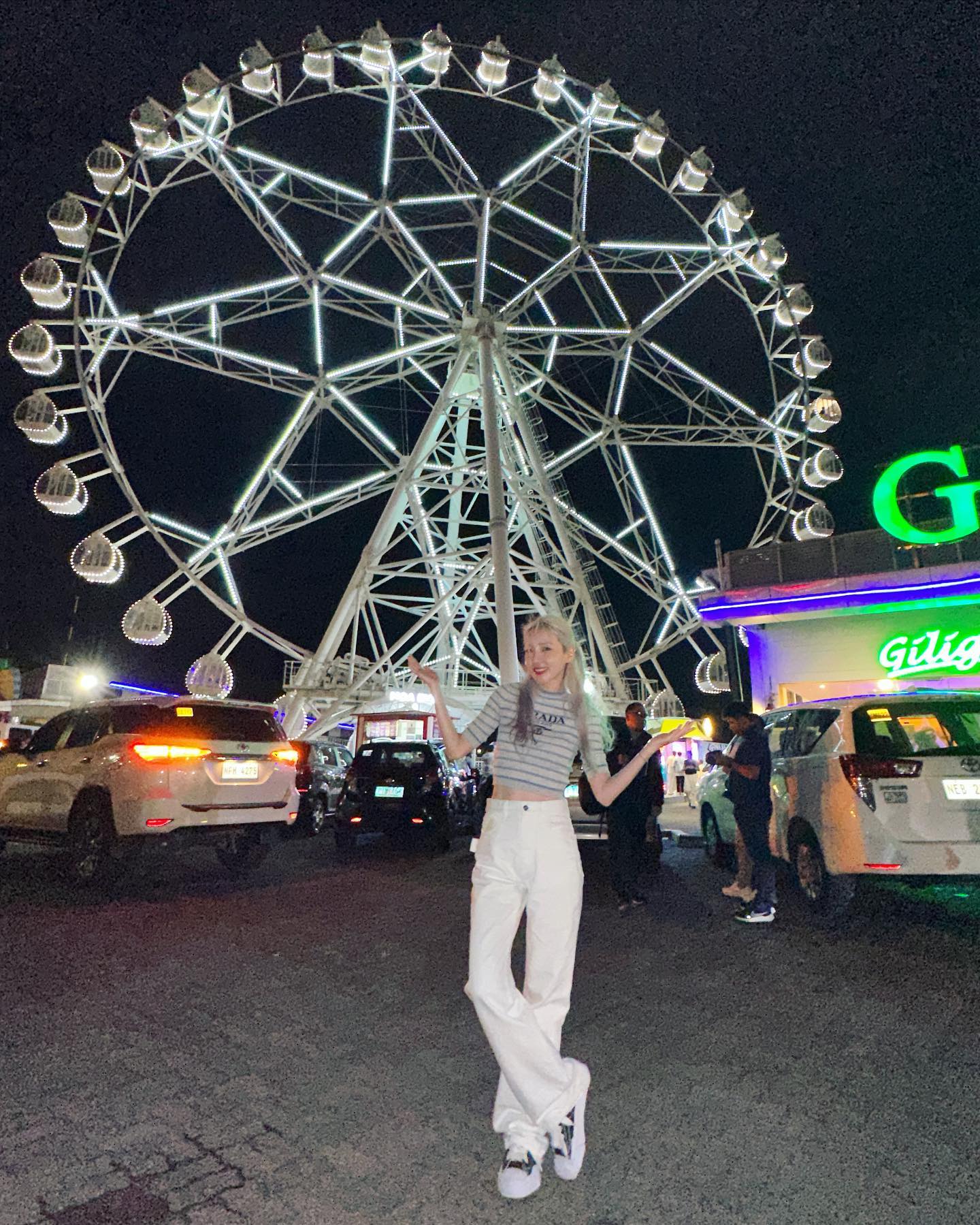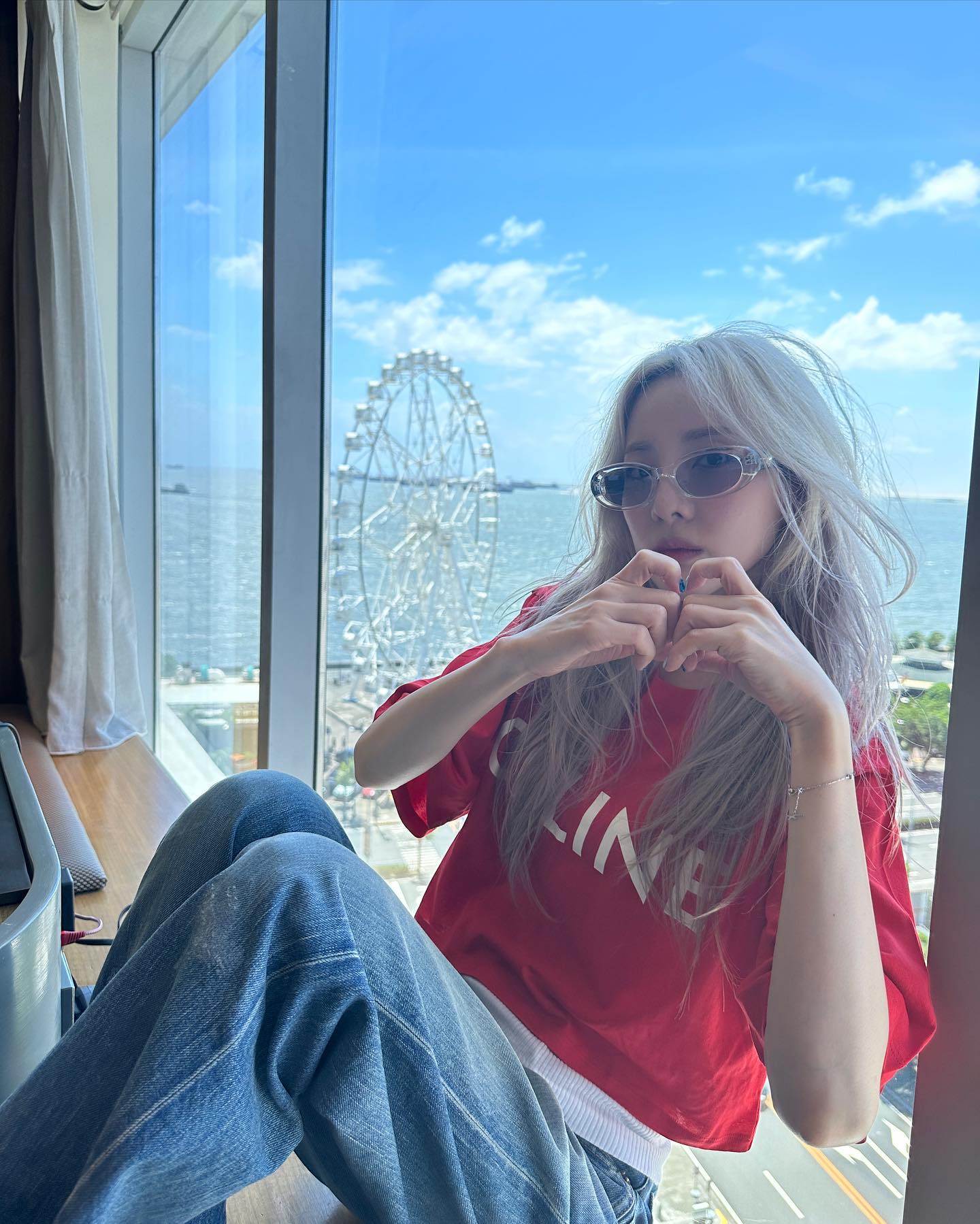 当然作为女鞋头晒鞋是一定的,这不拍个摩天轮,也不忘把自己的三原康裕溶解鞋出个镜。