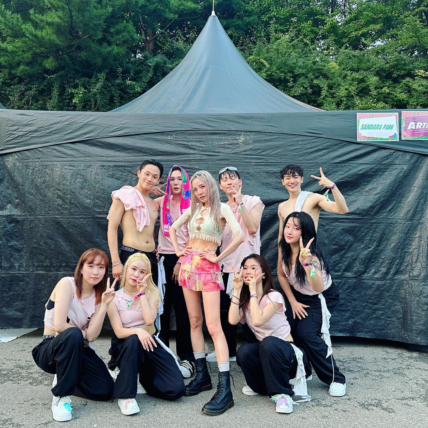 朴山多拉也是相当敬业,小短裙搭配紧身小上衣,但是这衣服小编觉得有点小紧了......