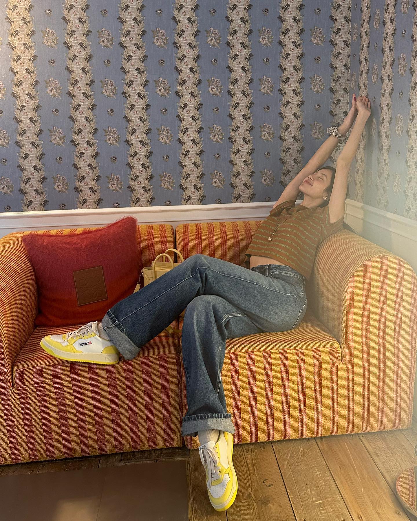 最后值得一提的就是几乎成为 BLACKPINK 四位标配的 Autry 复古板鞋。