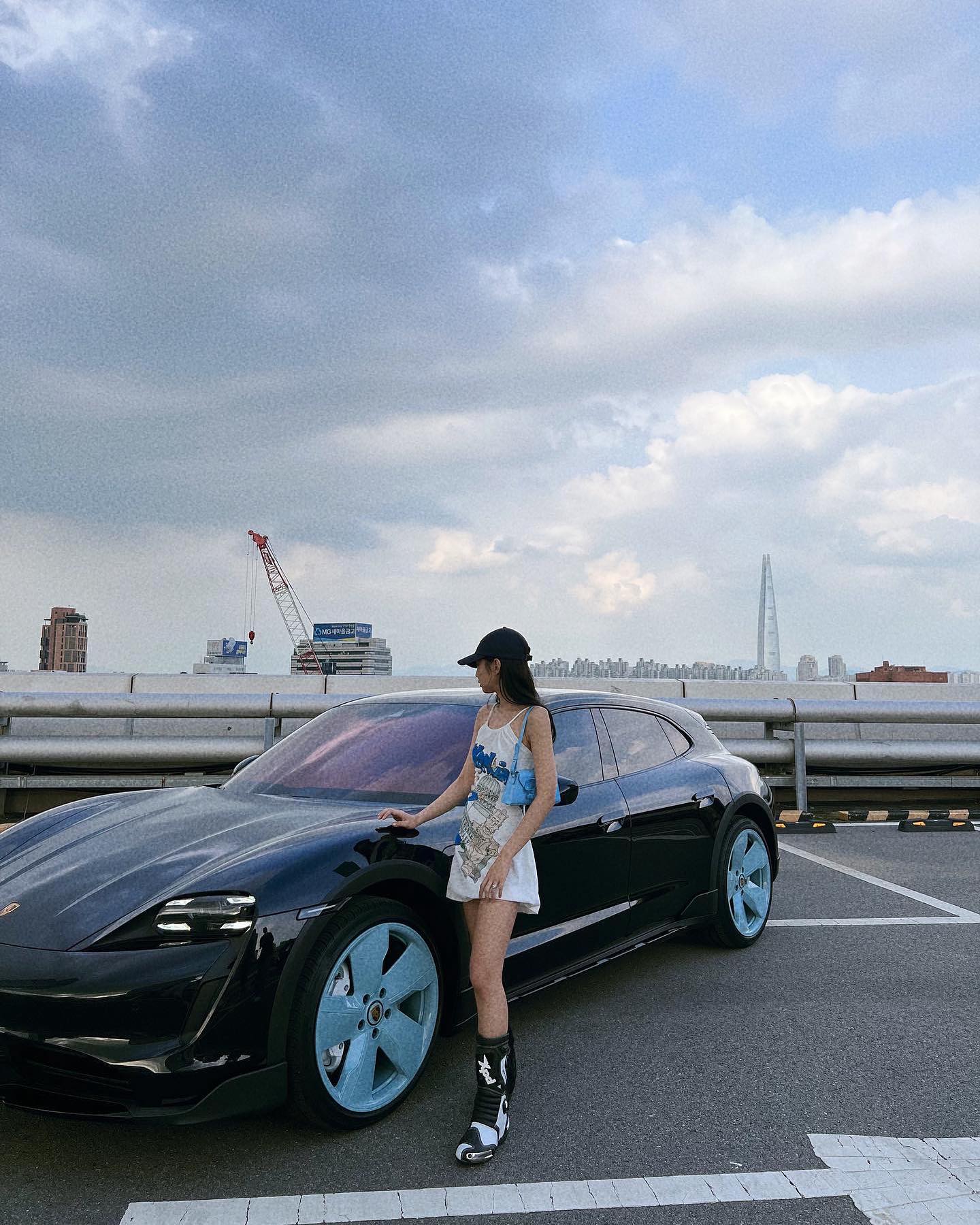 同时,这段时间 Jennie 还不忘记晒一下自己参与设计合作的保时捷 Taycan。