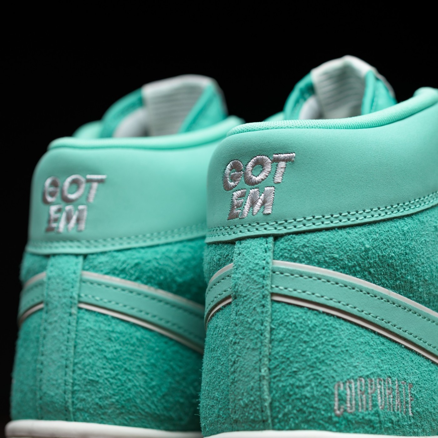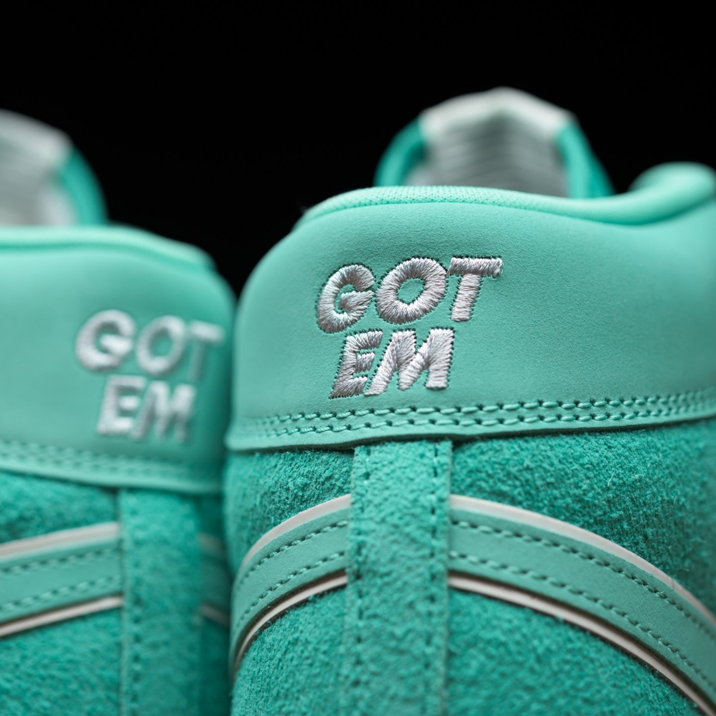 细节方面更是格外到位,不仅在后跟、内衬以刺绣手法缀有 Corporate Logo 和该店铺 GOT EM 标语,更随鞋附赠了联名吊牌,可见诚意。