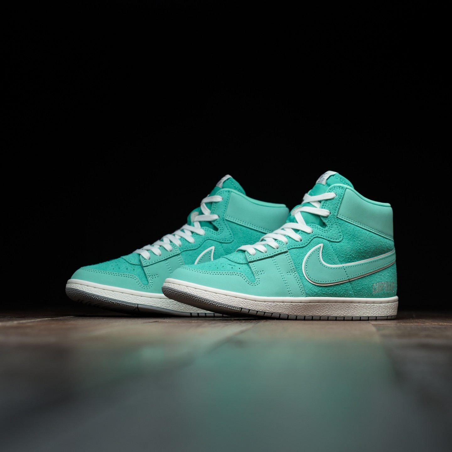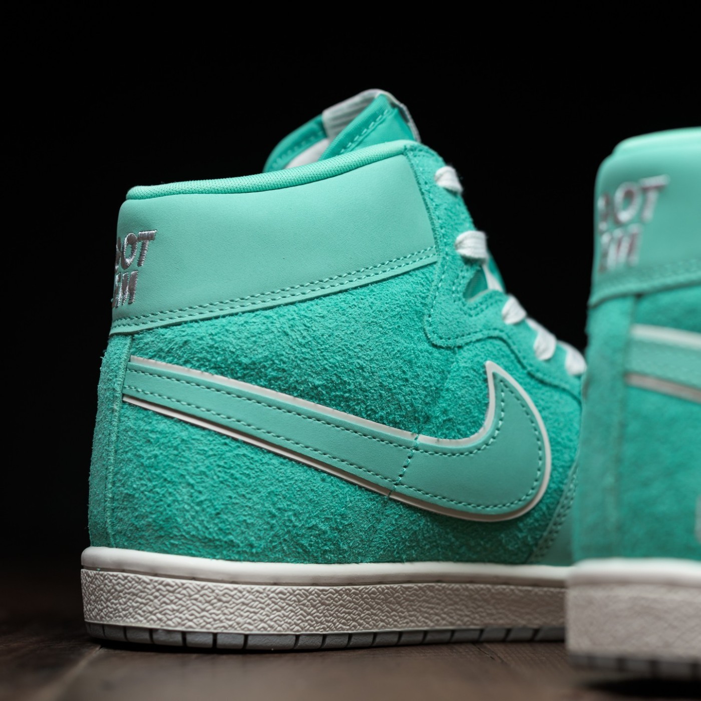 通体蒂芙尼色的麂皮材质鞋身,加上白色点缀,造型清新也可以在黑白灰穿搭时点亮整身造型。