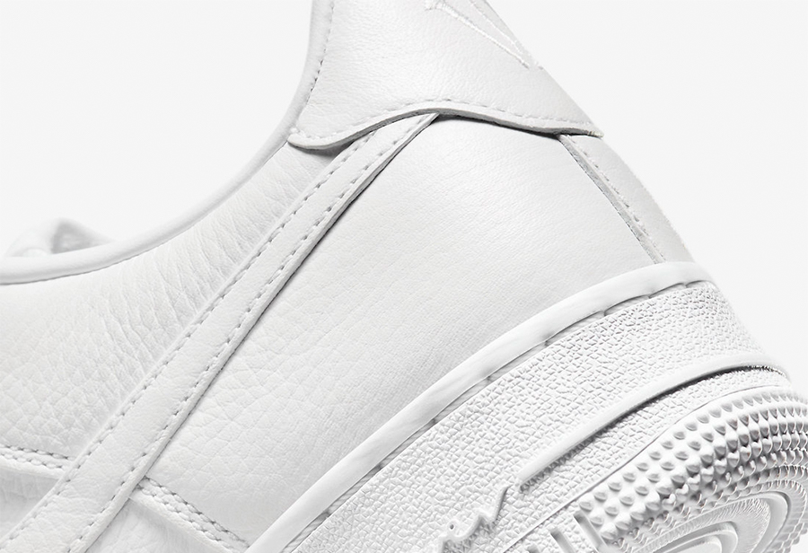 鞋面采用质感更好的荔枝皮革打造,后跟处印有 NOCTA 的三剑客 Logo,凸显联名身份。