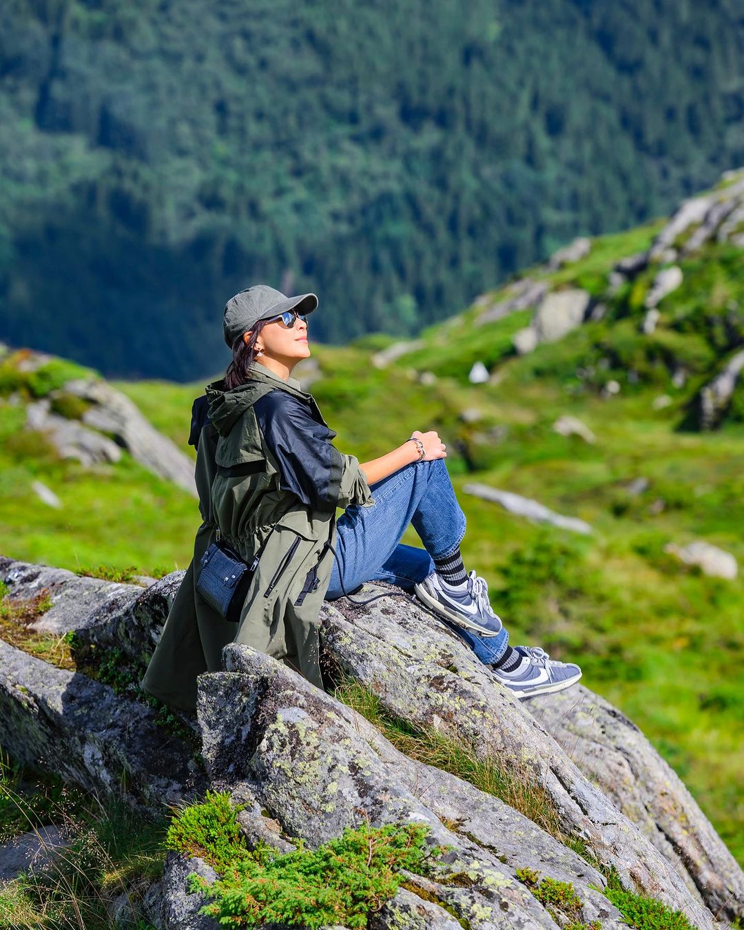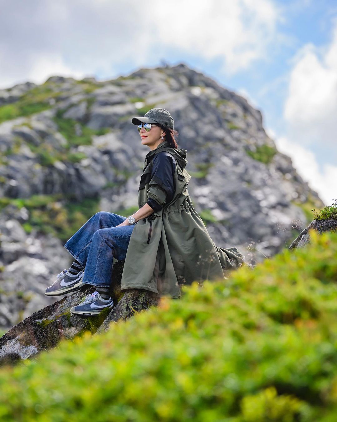 刘嘉玲近期社交平台的含鞋量相当高,最近晒出一组爬山照,上脚的是灰色款 sacai x Nike Zoom Cortez。