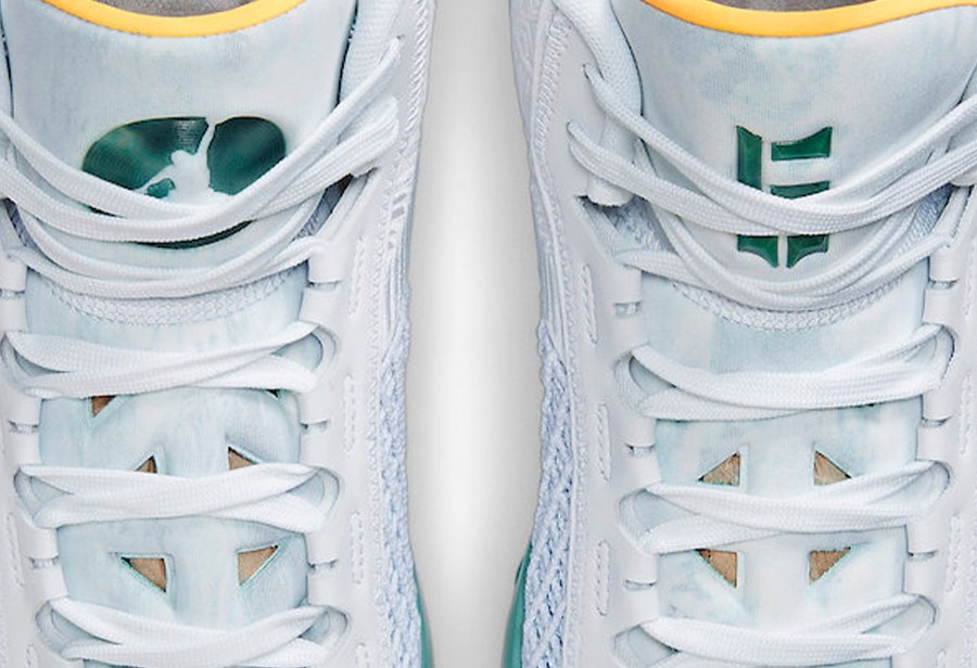 另一大看点在于鞋舌,不仅在白色部分融入大理石花纹,上面的郭艾伦 Logo 也采用翡翠质感呈现。