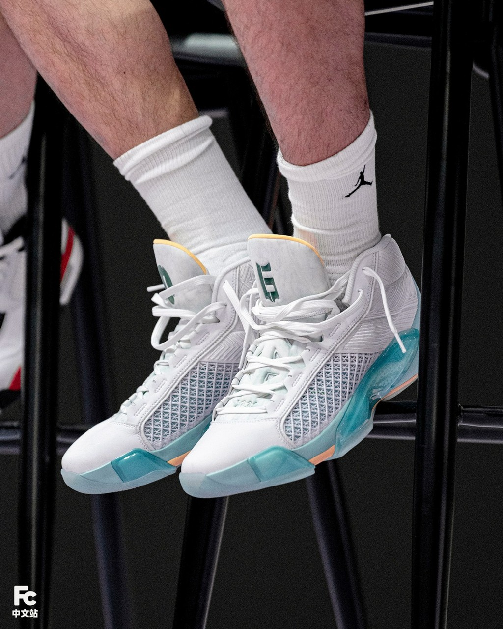 8 月初,郭艾伦突袭 Jordan 日落东单赛场,给球迷们带来惊喜的同时,也亲穿曝光了自己的 Air Jordan 38 专属 PE。