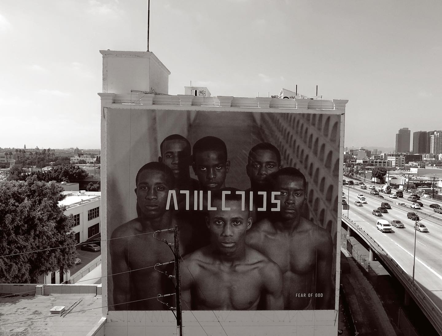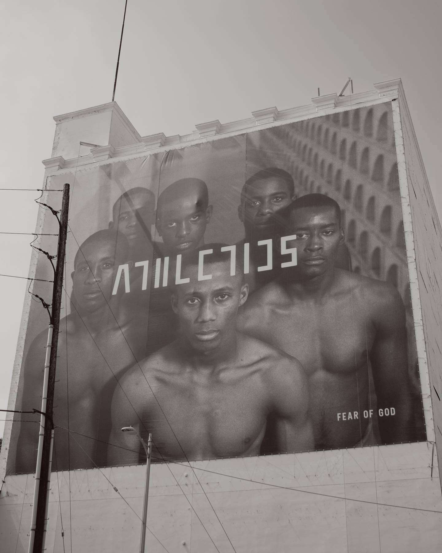 此次为 Fear of God Athletics x adidas 呈现主视觉,可以看出以黑白风格呈现,画面由六位身材健硕的黑人小哥组成。