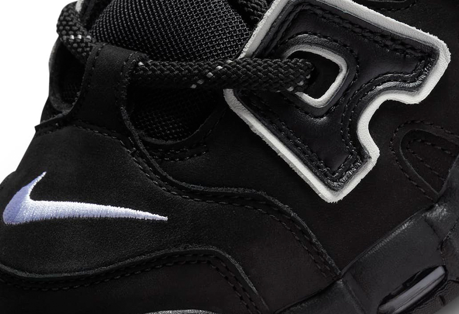 大面积黑色麂皮覆盖鞋身,一旁的 AIR 字样以白色勾边环绕,浓郁的元年复古气质扑面而来。