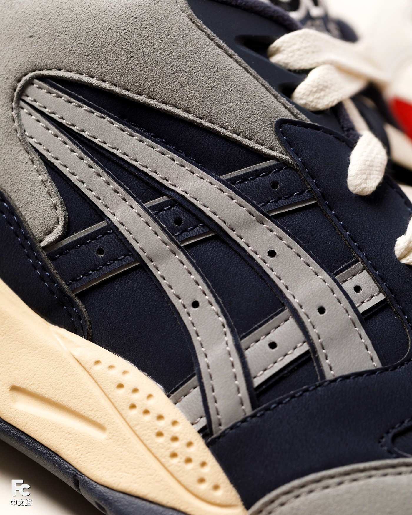 除了鞋面大面积的皮革材质打造之外,细节处鞋舌缀有精美刺绣,呈现 ASICS 品牌身份。