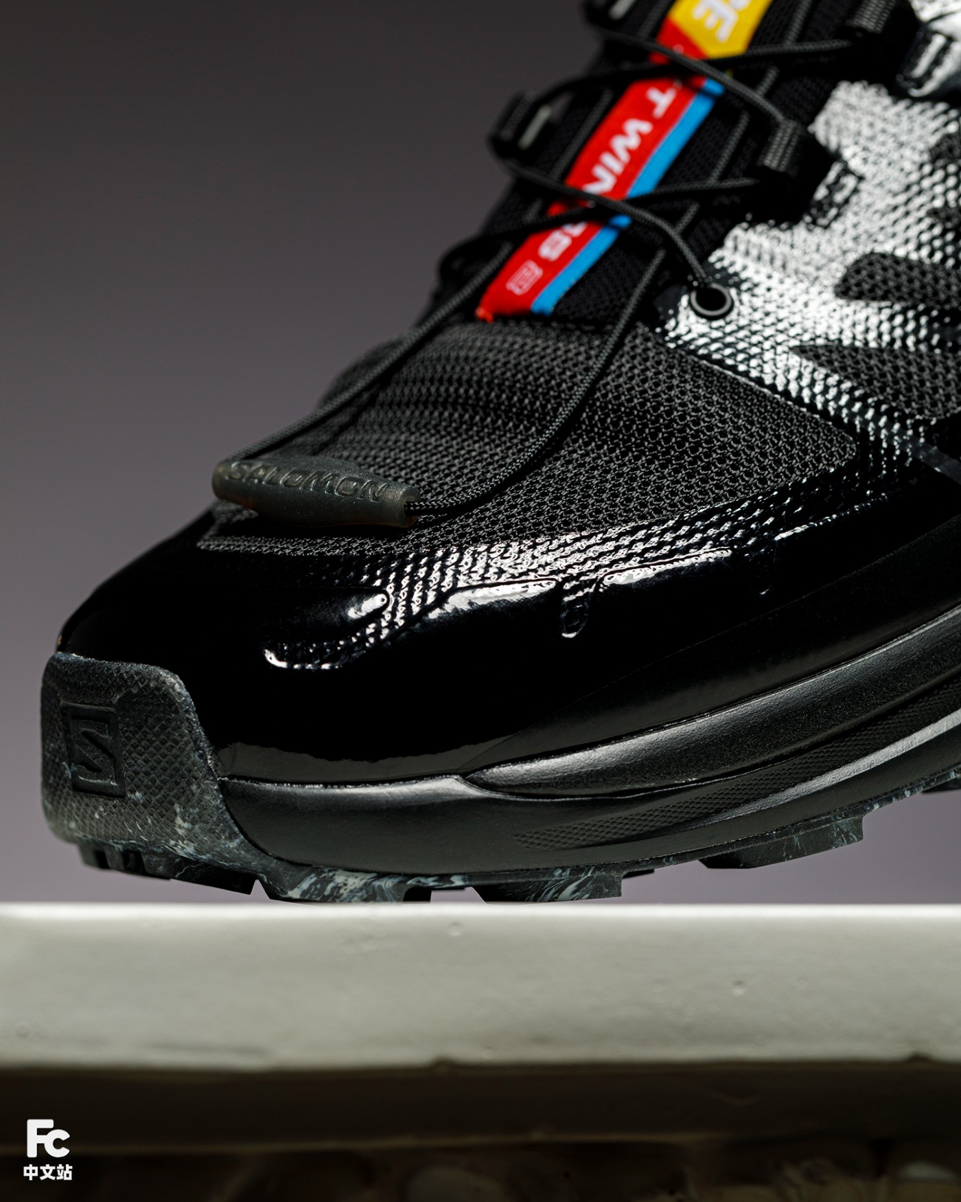 看过了上脚,终于可以感受一下 PALACE x Salomon XT-Wings 2 的细节处理了。