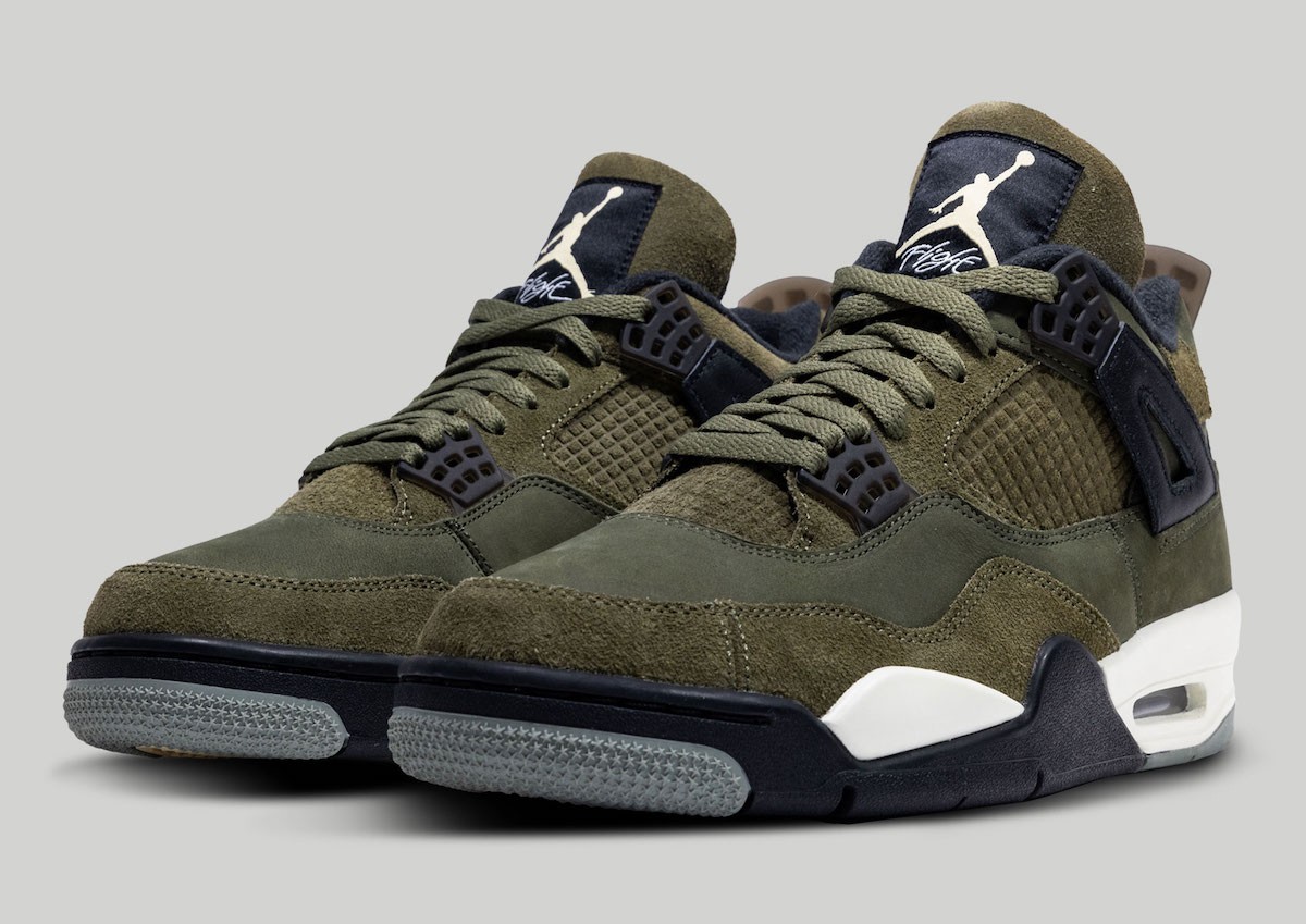 酷似 UNDEFEATED x Air Jordan 4 的外表下,将鞋面升级成了两种不同质感的麂皮面料,呈现出浓郁「军事风」,使颜值质感兼具。