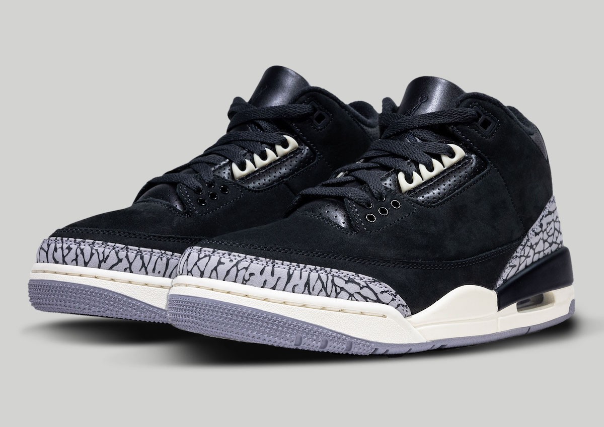也被称之为「黑水泥 2.0」黑色翻毛皮打造的鞋身搭配标志性爆裂纹点缀,乍看与「黑水泥」Air Jordan 3 颇为相似,在看多了 OG 黑水泥后,感觉这次质感表现更胜一筹。