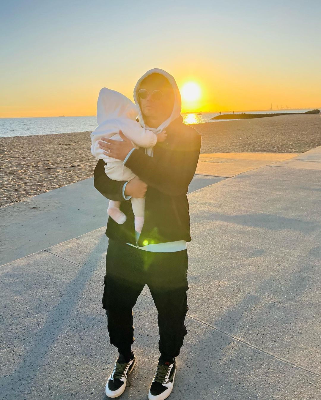 不仅打高尔夫在穿,抱孩子在沙滩遛弯也在穿,妥妥把这双鞋当成是多功能通勤鞋了。