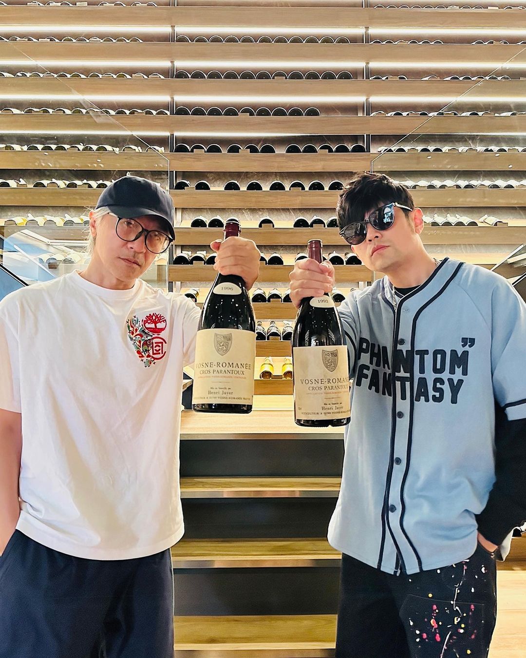 不仅手中超大瓶红酒引起葡萄酒圈的一片关注,两人脚上穿的联名鞋也都挺狠。