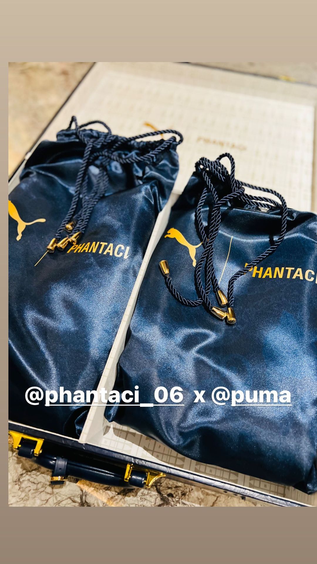 之前在社交平台秀过该联名系列的特殊包装,配备了防尘袋,还有高规格手提箱鞋盒。