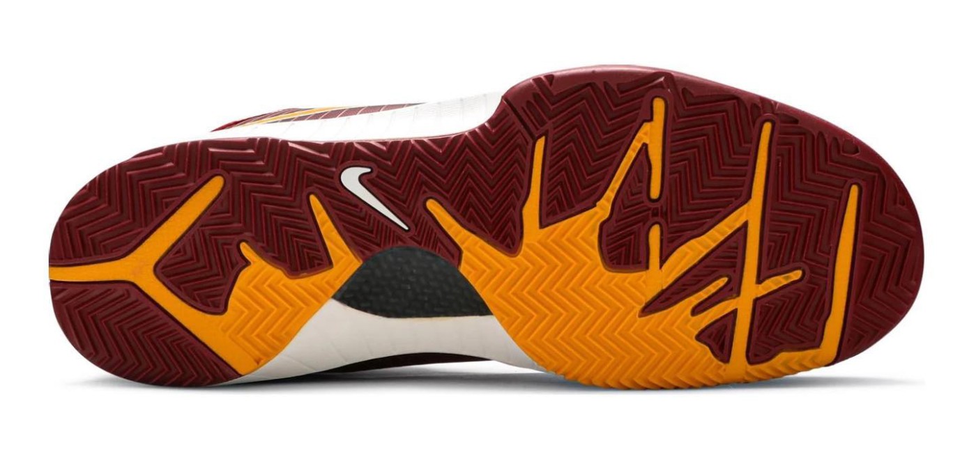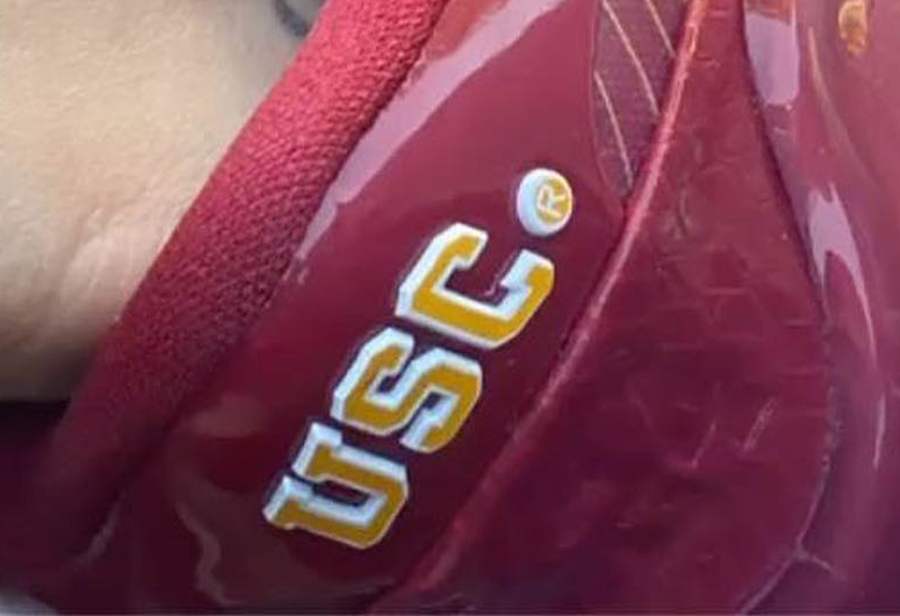 整双鞋作为南加州大学的 PE 配色,整体采用红白搭配,黄色点缀,完美还原球衣配色。