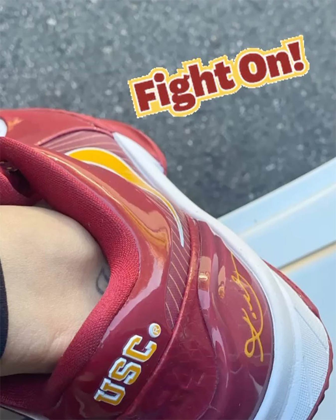 这双鞋在 2021 年科比的大女儿娜塔莉亚成功考入南加州大学,瓦妮莎将这款鞋送给她,以纪念科比。