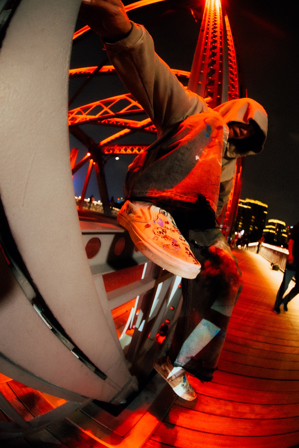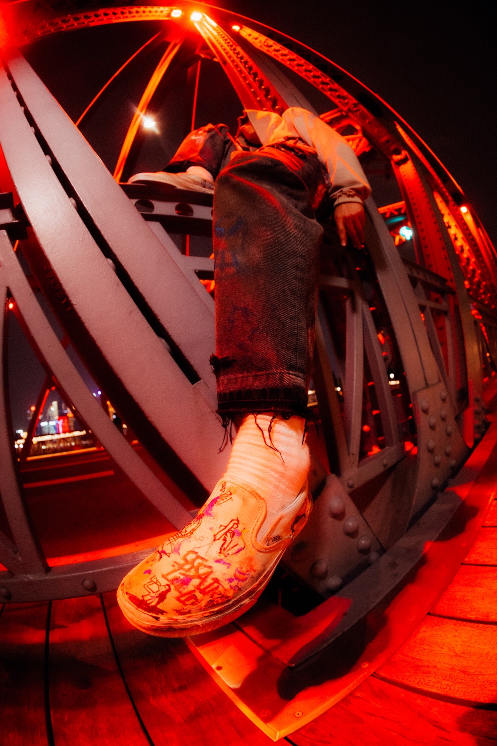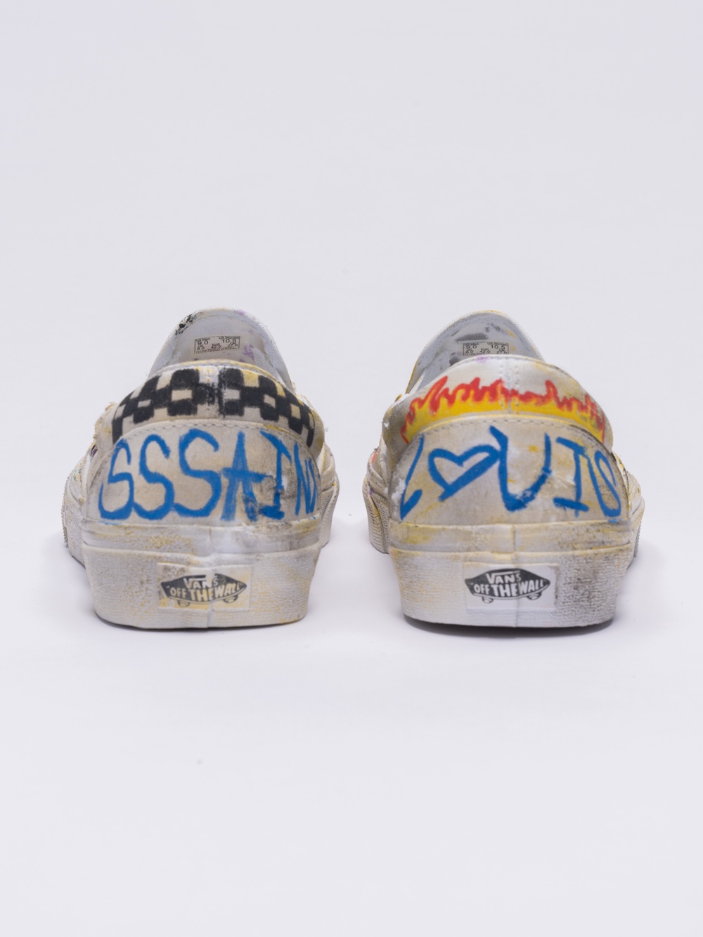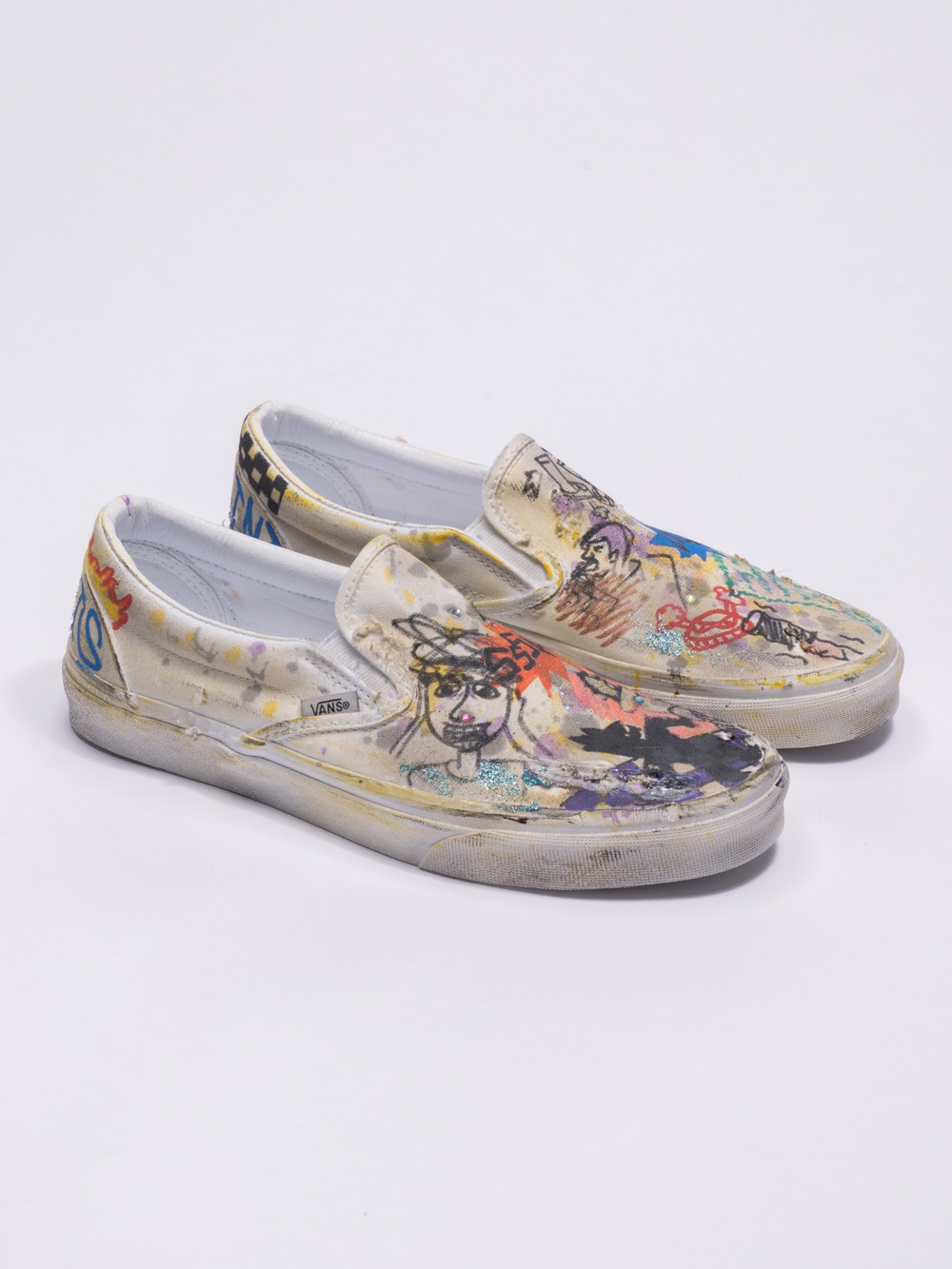 设计方面以 Sssaint Louis 独具一格的手绘泼墨和刻意破坏的风格呈现,每一道工艺均由手工独立完成,带来了三款围绕夜晚有关的 Slip-On。