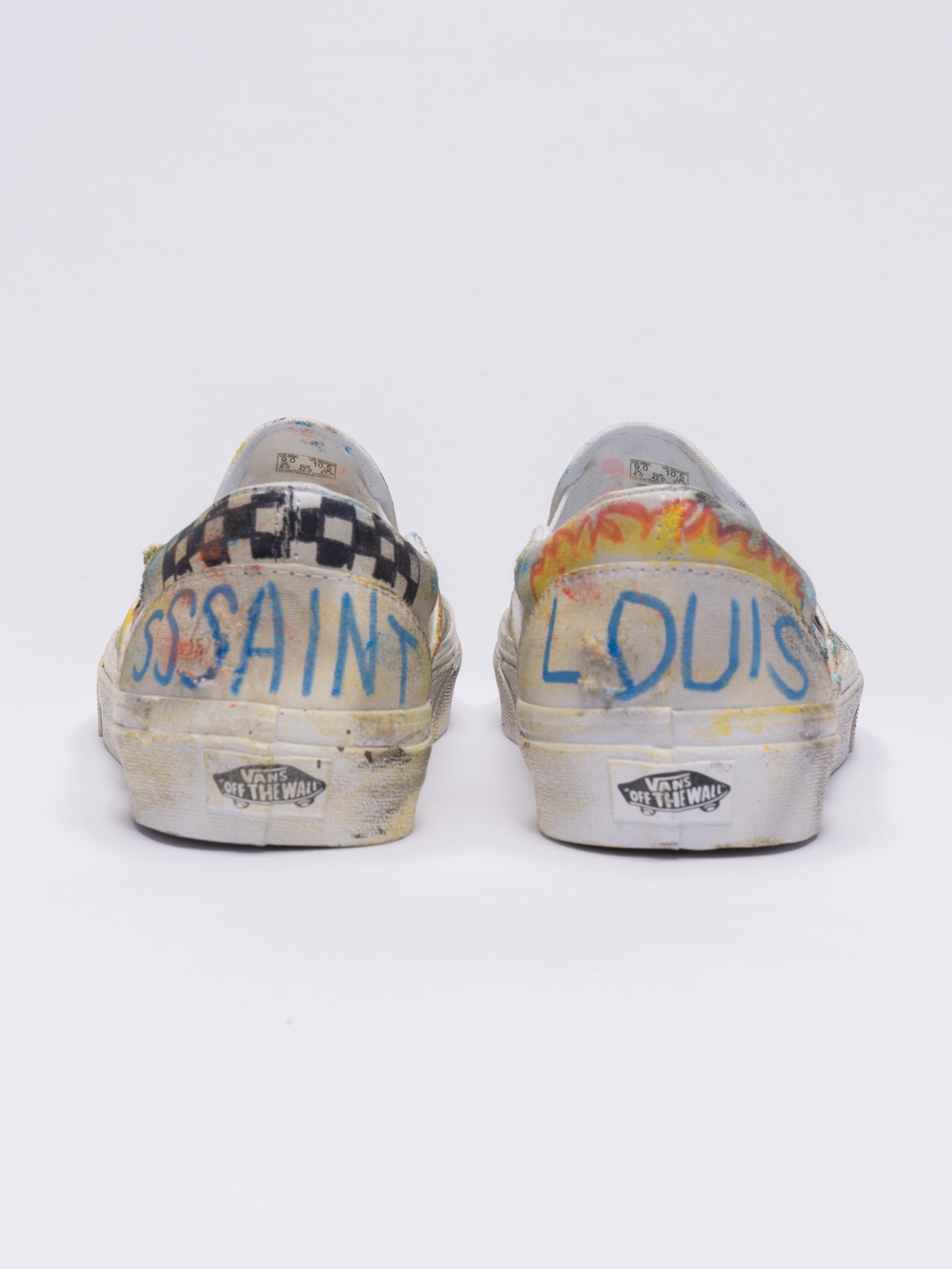 除此之外,藏于每双鞋体故事中的 Logo 细节也颇为讲究,用街头文化代表性的涂鸦形式来展示 Sssaint Louis 字样。