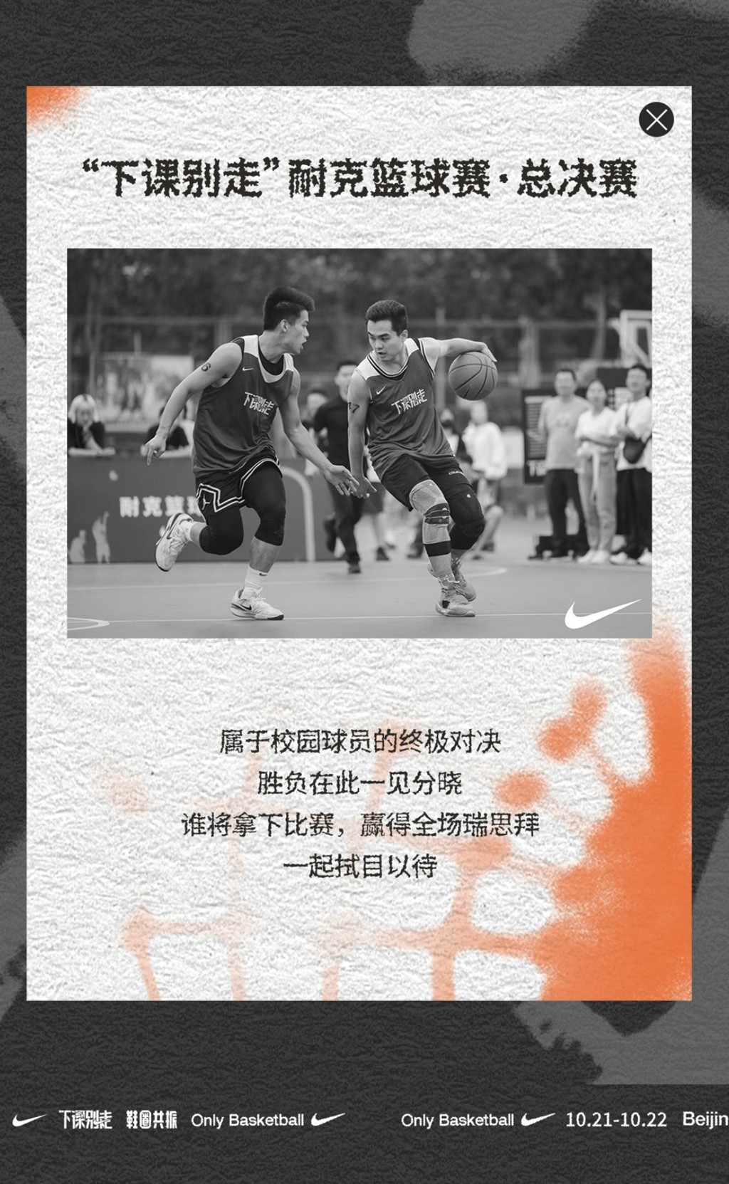 首先就是 “下课别走” Nike 篮球赛总决赛,究竟最终冠军花落谁家,咱们拭目以待!