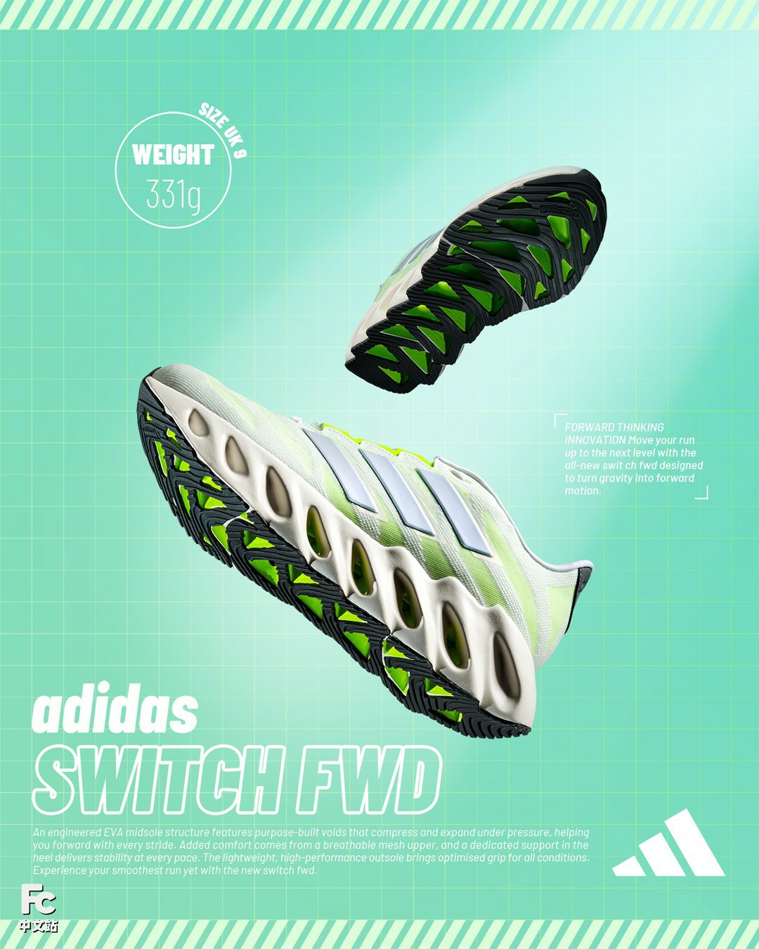 Boost 科技在鞋圈不可撼动,但今年带来的结构缓震新鞋 Switch FWD 同样让人眼前一亮。