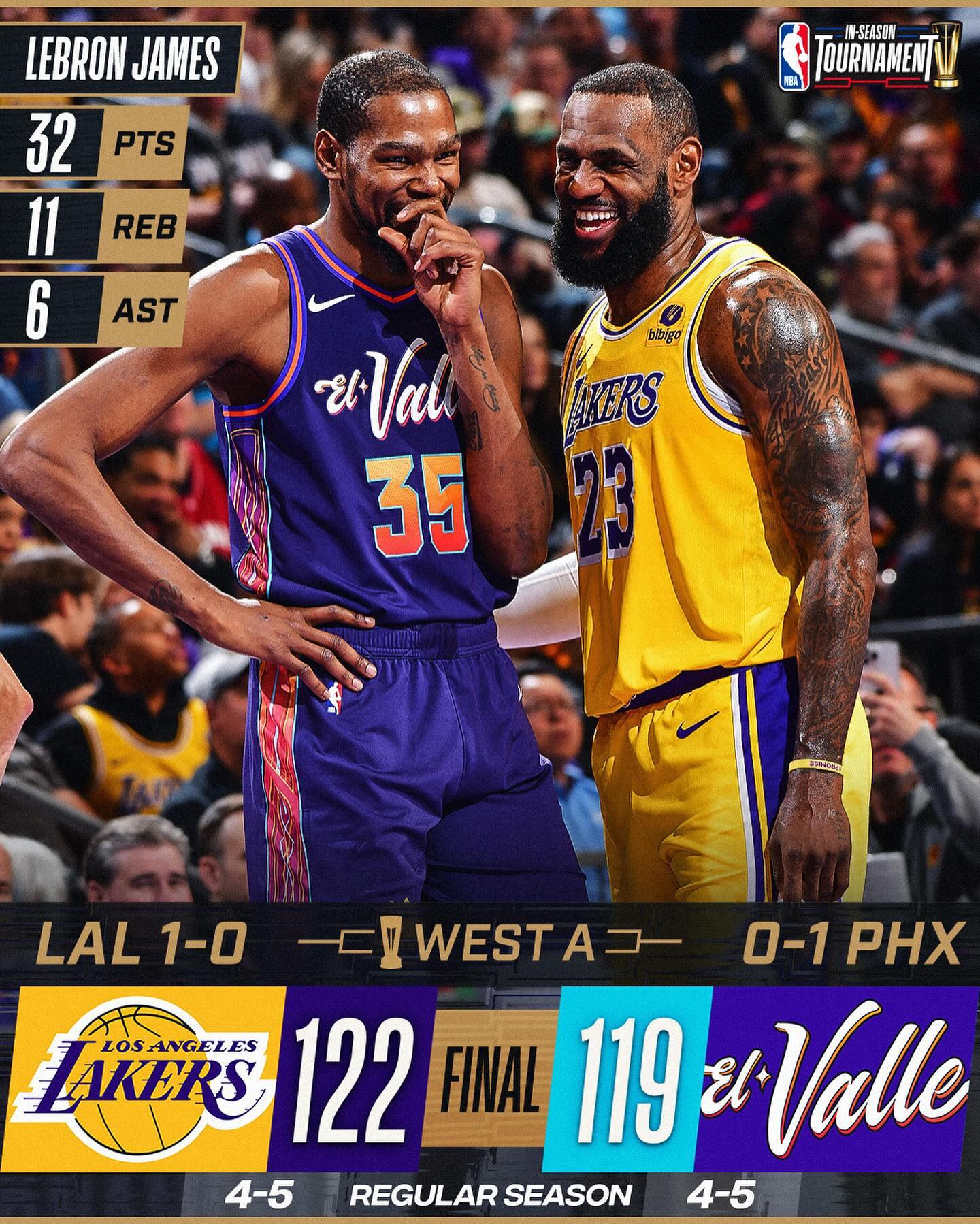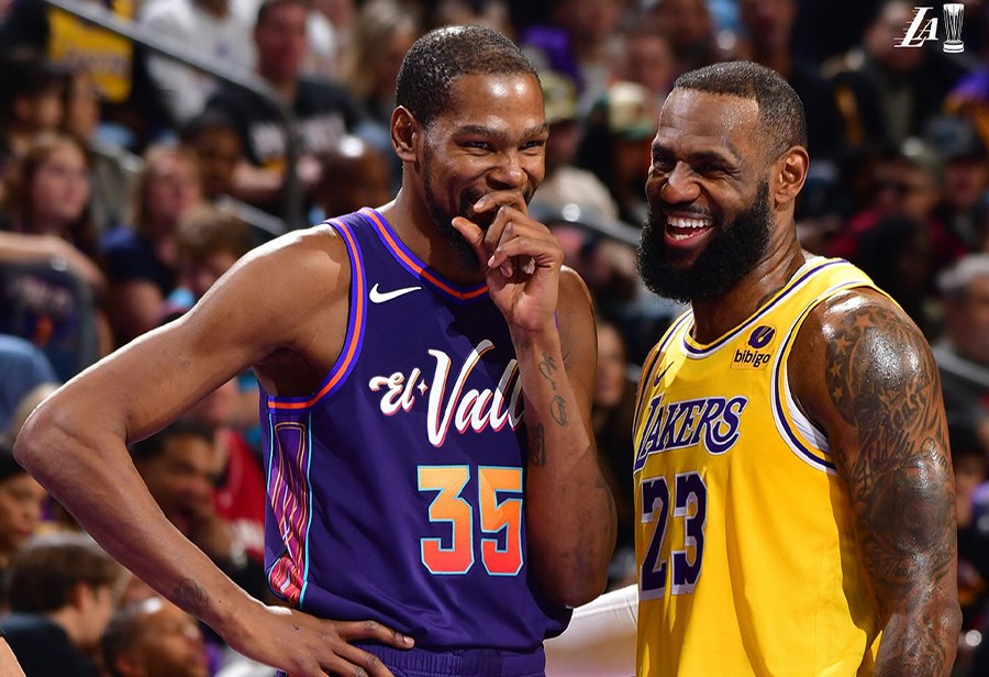 而其中最让人期待的比赛,就是湖人 VS 太阳了,这也是詹姆斯和杜兰特本赛季的第二次相见。