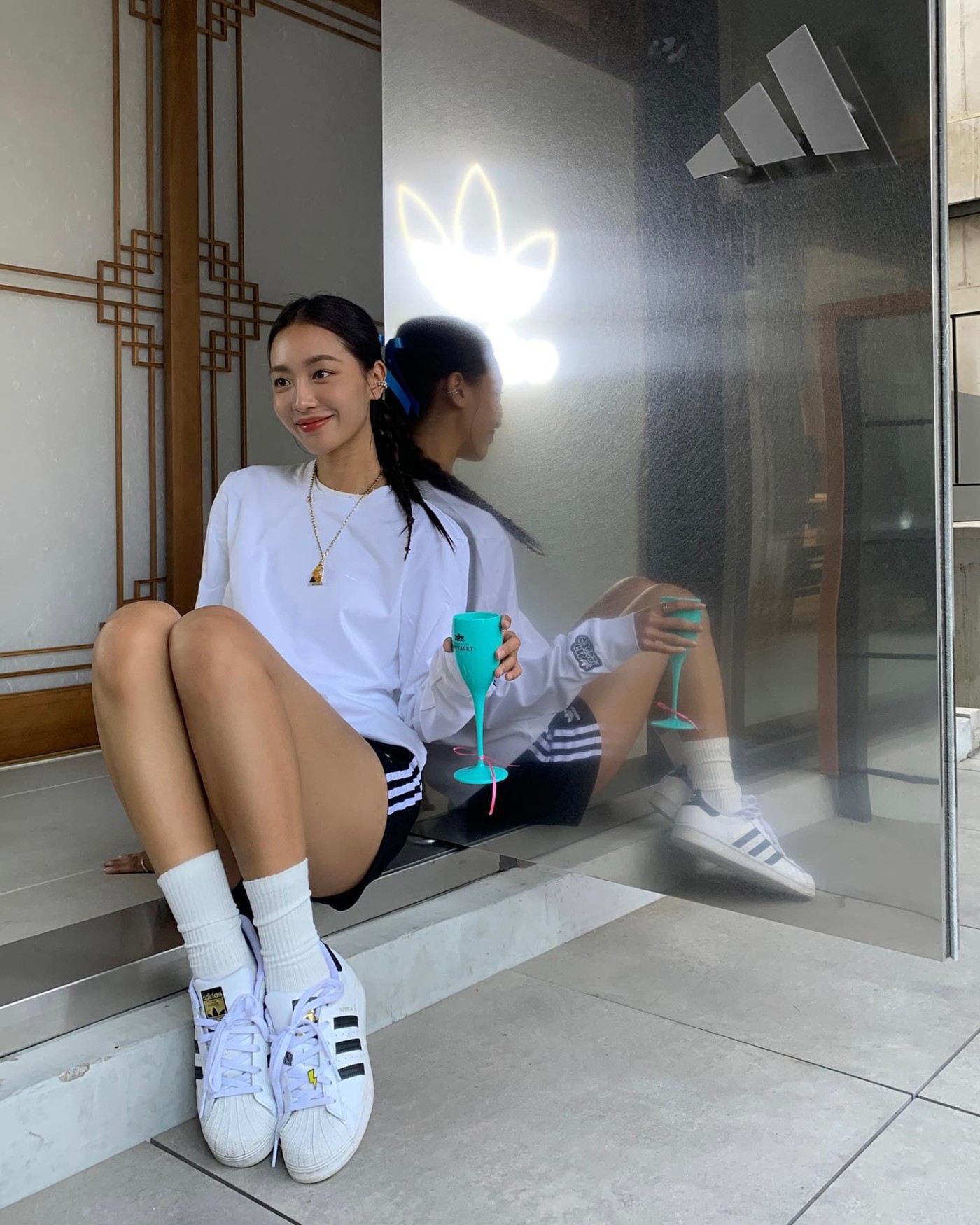不仅如此,她私下更是个不折不扣的潮流女孩,用球鞋进行搭配绝对是家常便饭,日常最青睐的便是 adidas Originals Superstar。
