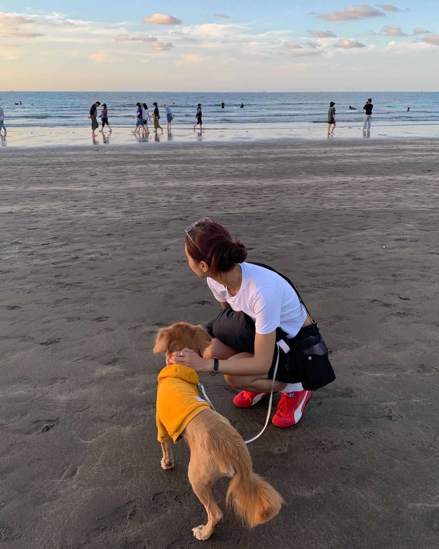 遛狗时还曾上脚 PUMA Speedcat OG Sparco,让鞋款称为整身的重点,颇具时尚感。