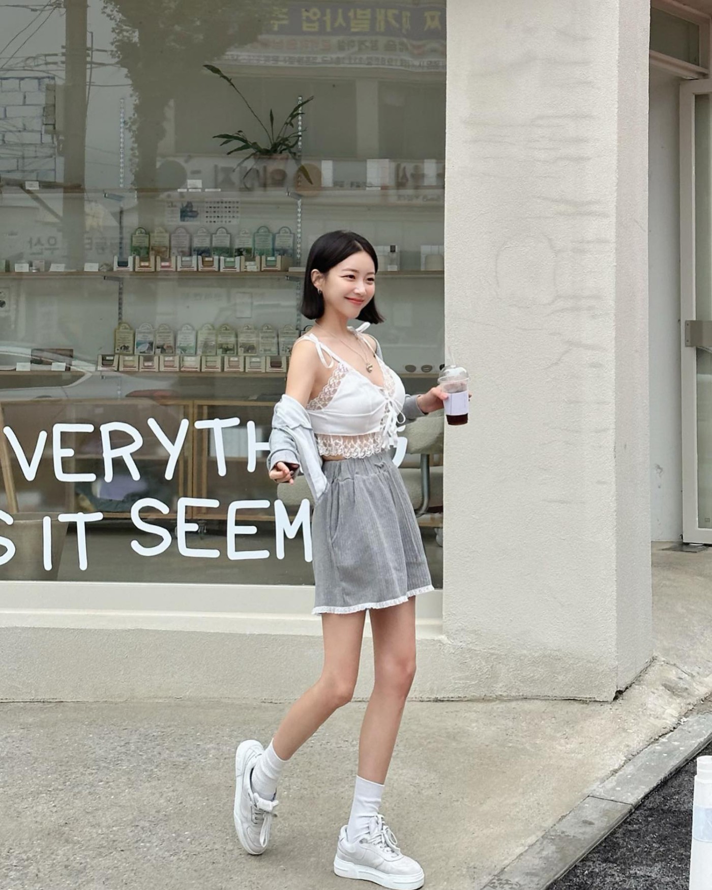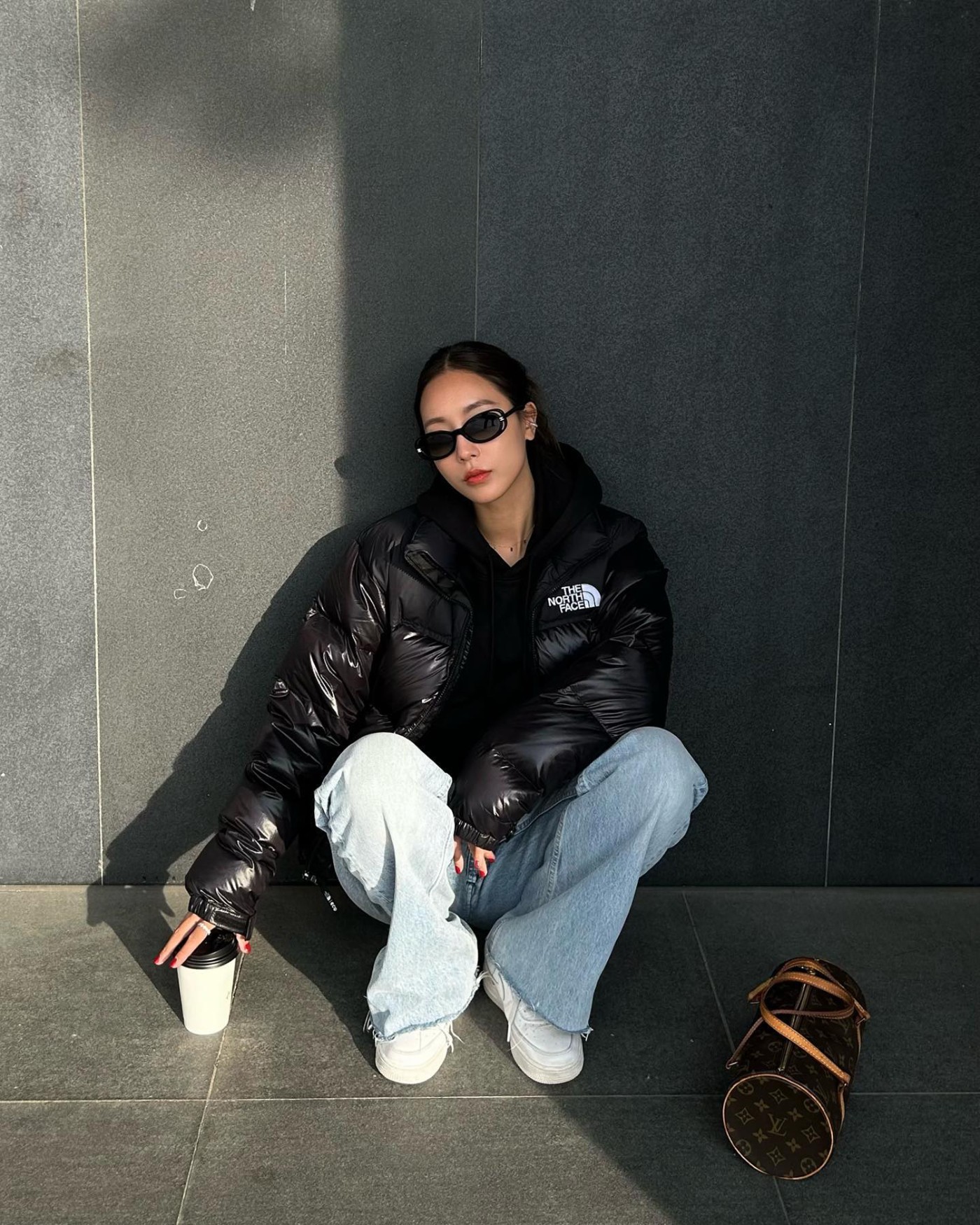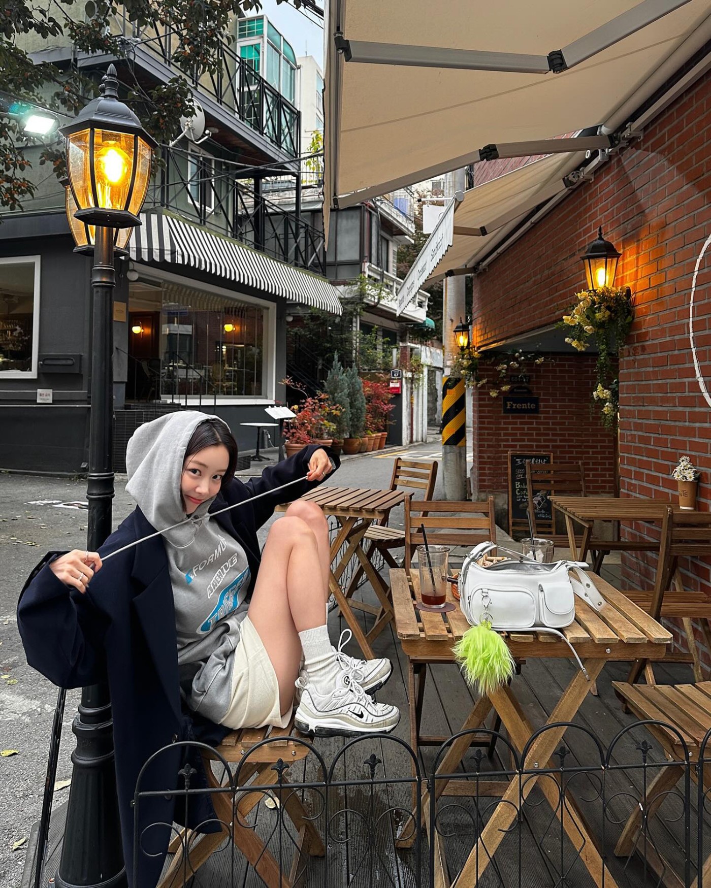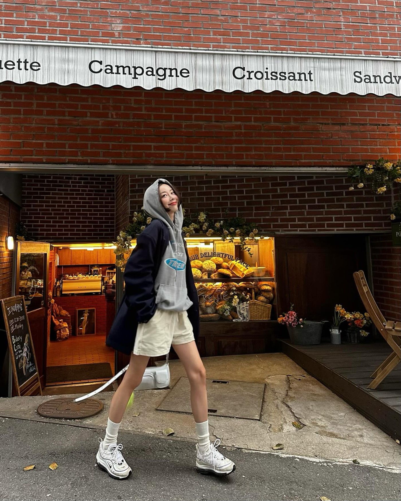 Nike Air Max 97 搭配灰色帽衫,绝对是教科书级别的韩系穿搭,俏皮又可爱。