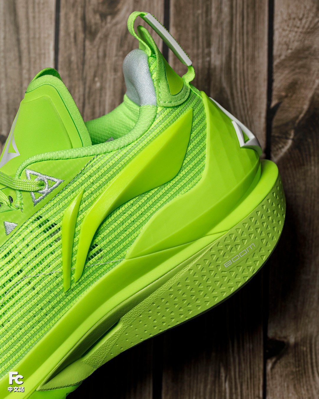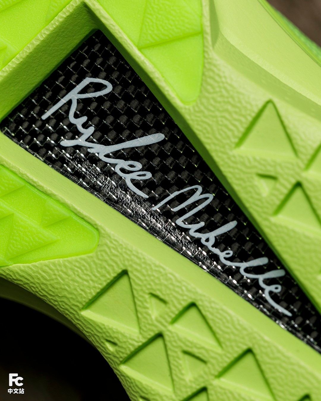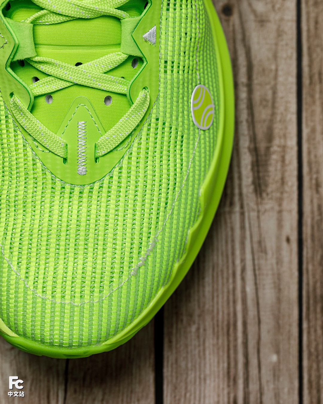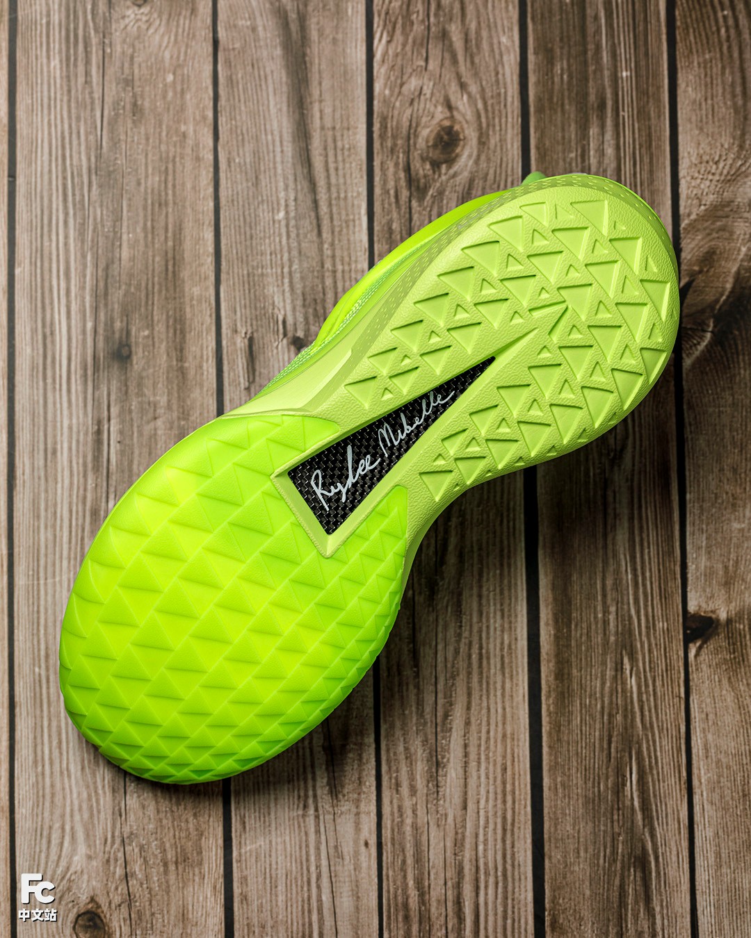 值得一提的是,这双配色将前掌外底换成半透明荧光绿橡胶,但不会对 GCU 科技的耐磨与防滑表现产生影响。