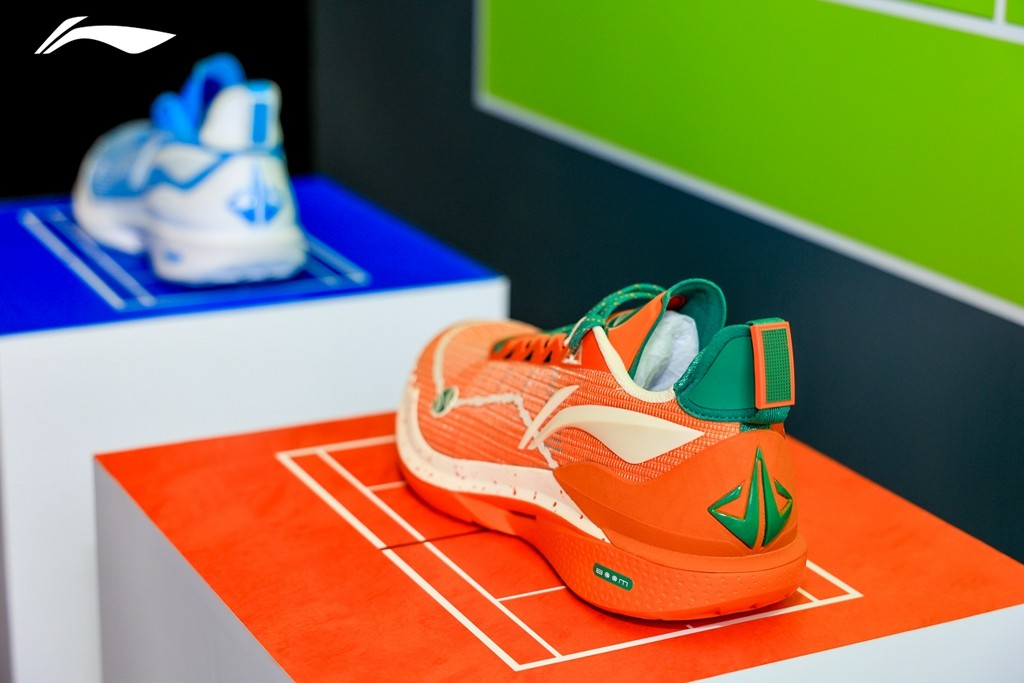 现场展示的另外四双,分别对应网球四大满贯:澳网、美网、温网、法网的 Logo 颜色,与这双网球配色一起组成系列。