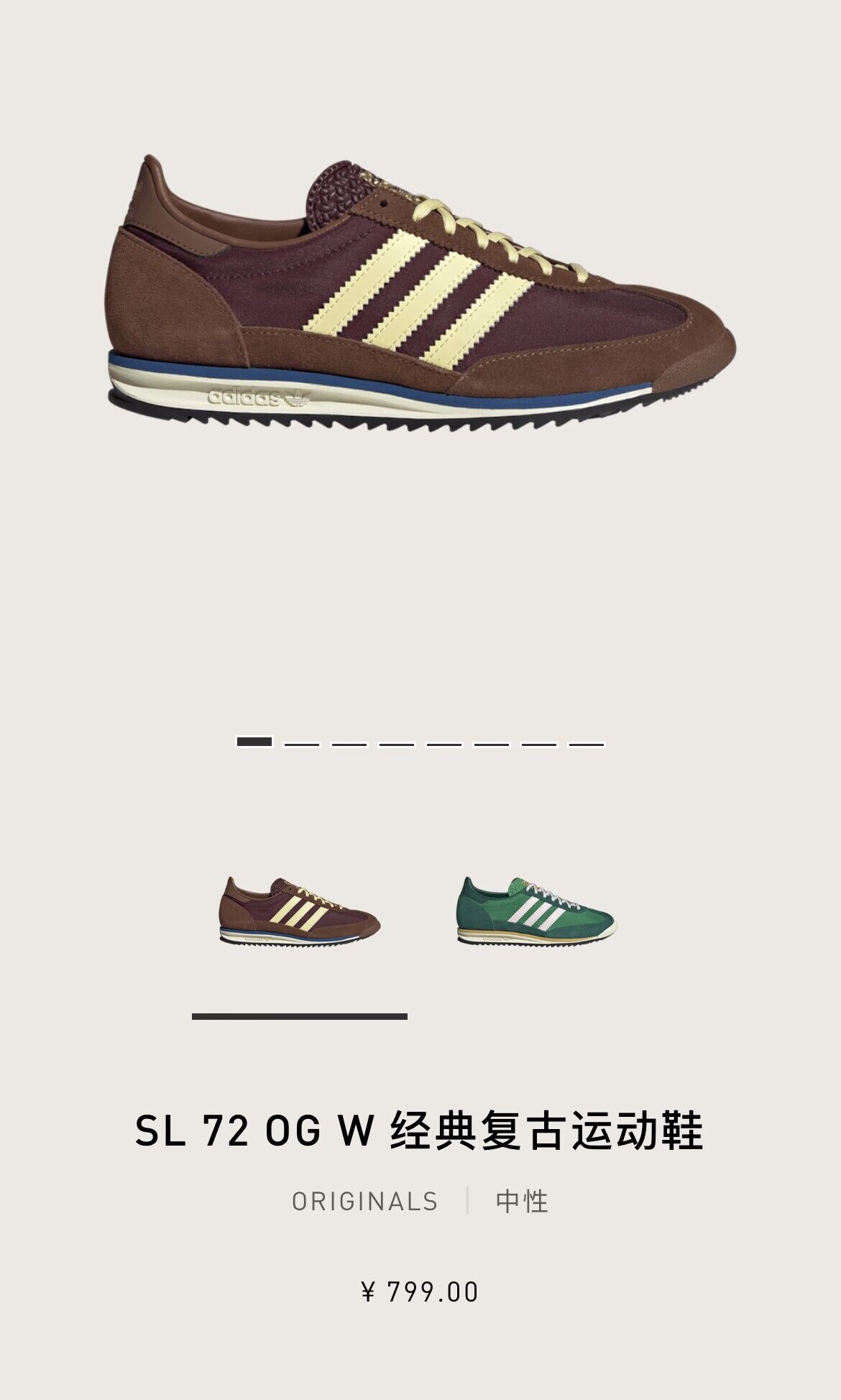 近日,adidas Originals SL 72 推出红绿两款配色。
