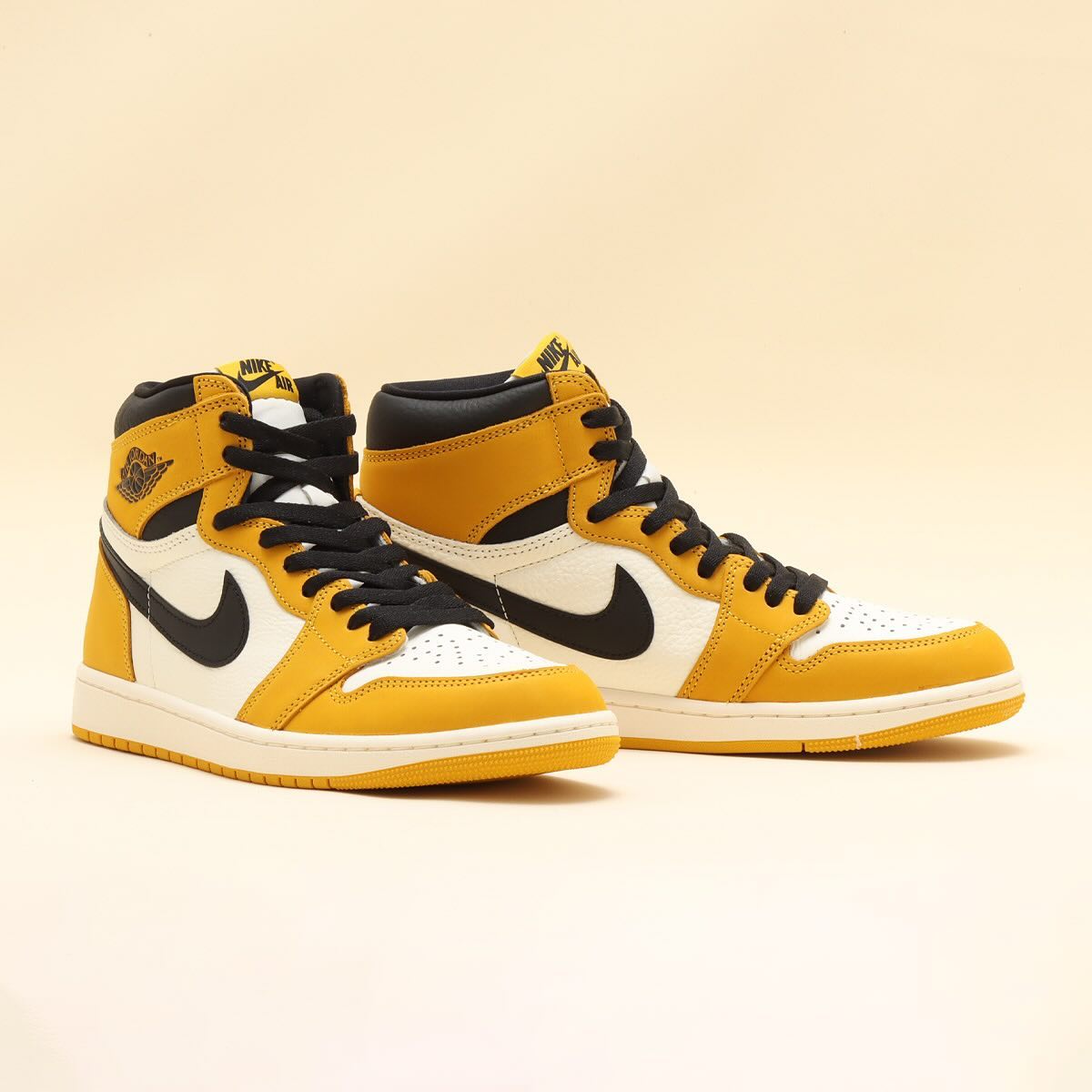 在明年推出的第一双高帮 AJ1 整体黄白搭配,黑色 Swoosh 点缀,妥妥的平替款。