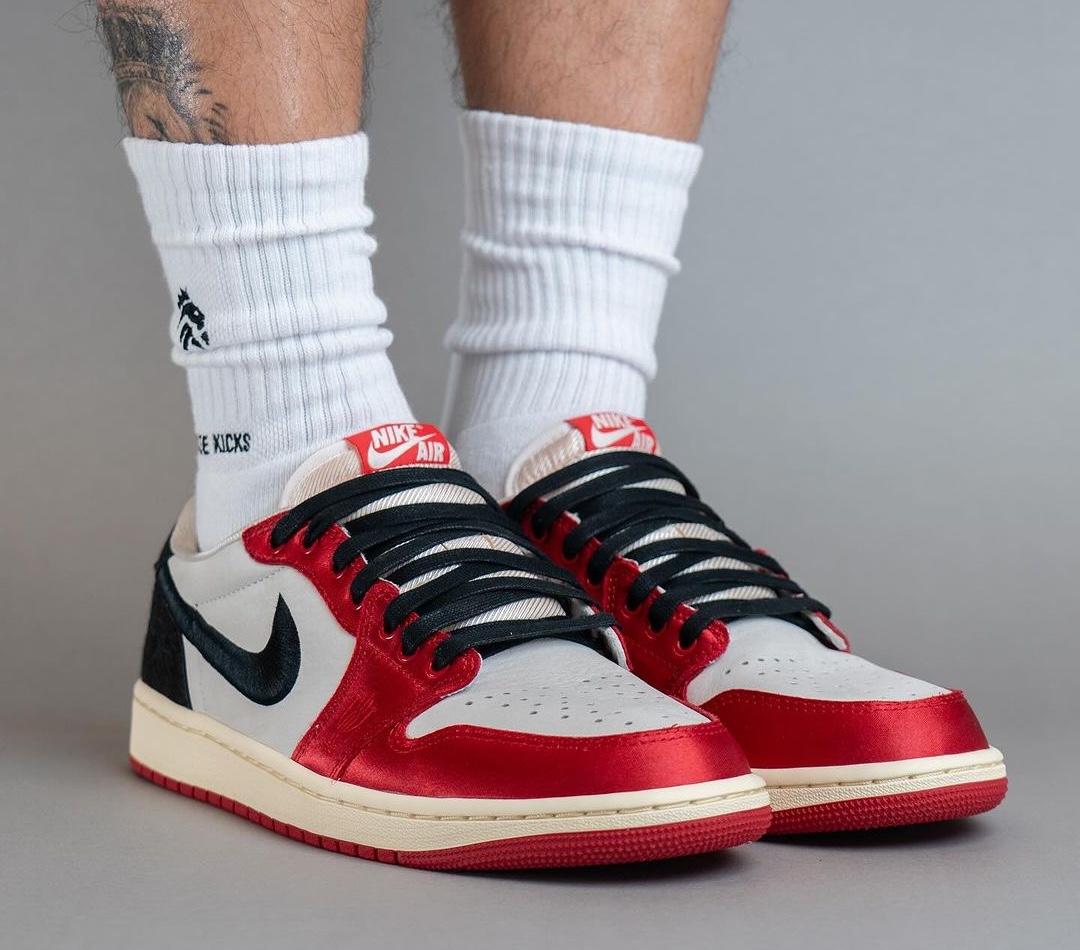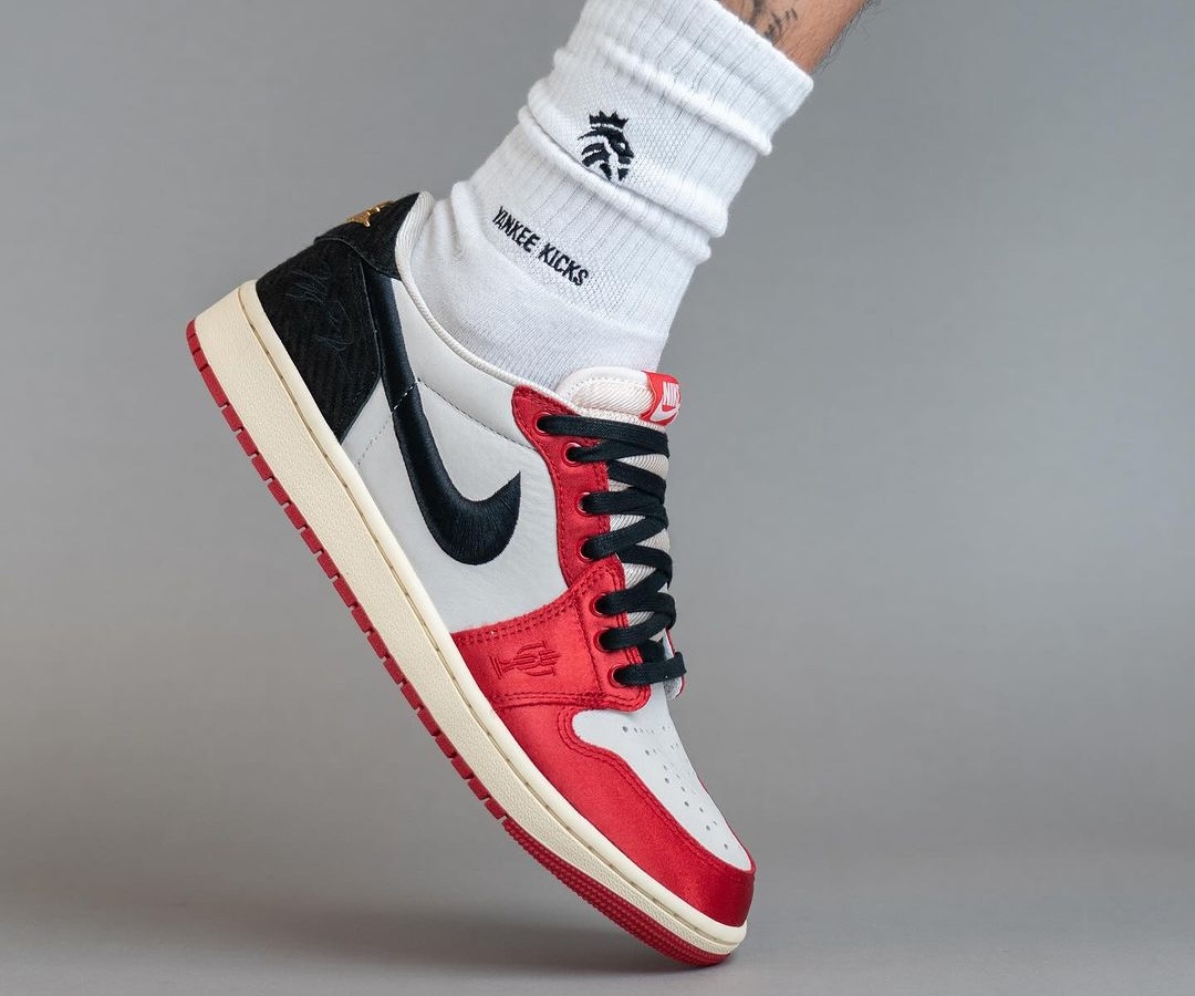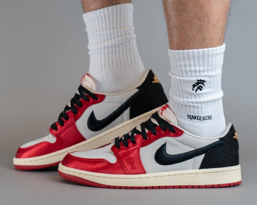 最近,Trophy Room x Air Jordan 1 Low 正式曝光了上脚图,快来看看吧!