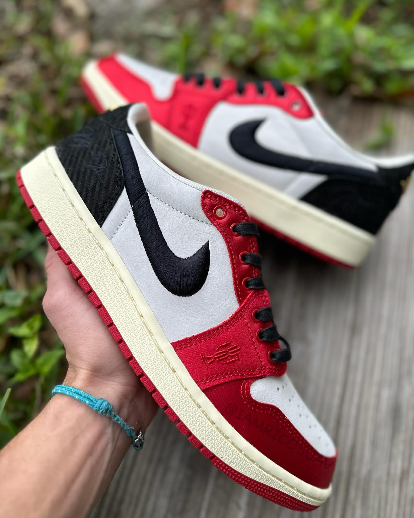 预热许久的 Trophy Room x Air Jordan 1 Low 释出了不少的实物图和上脚图,相信已经有不少小伙伴都成功种草。