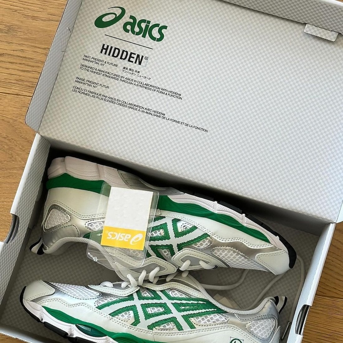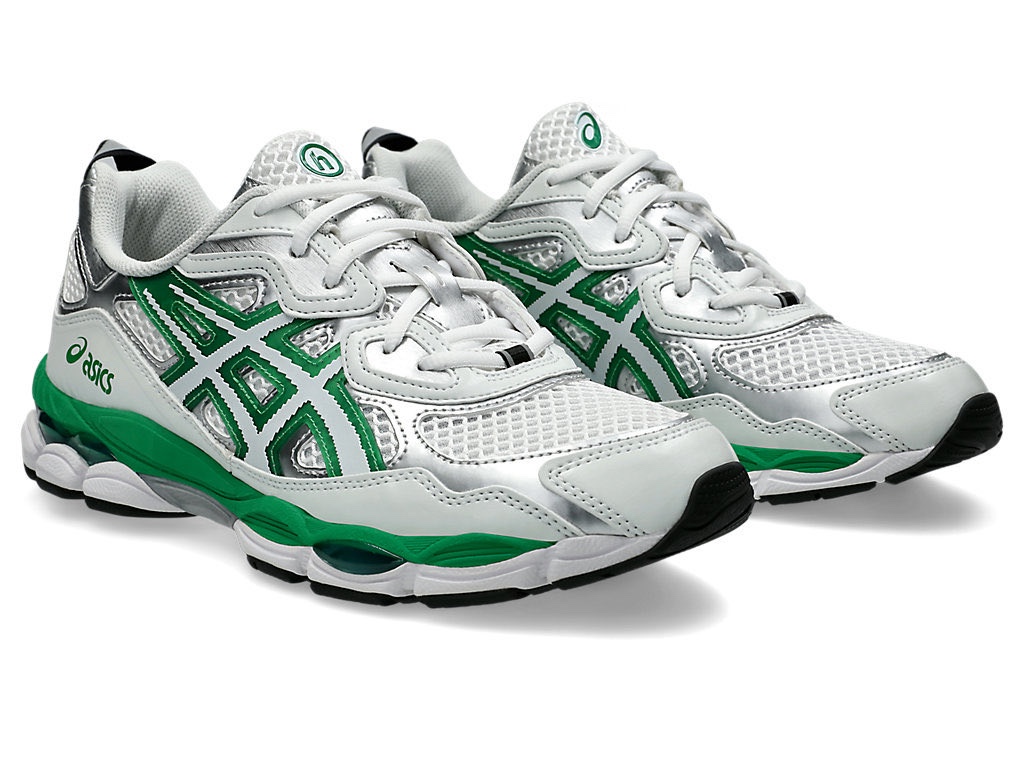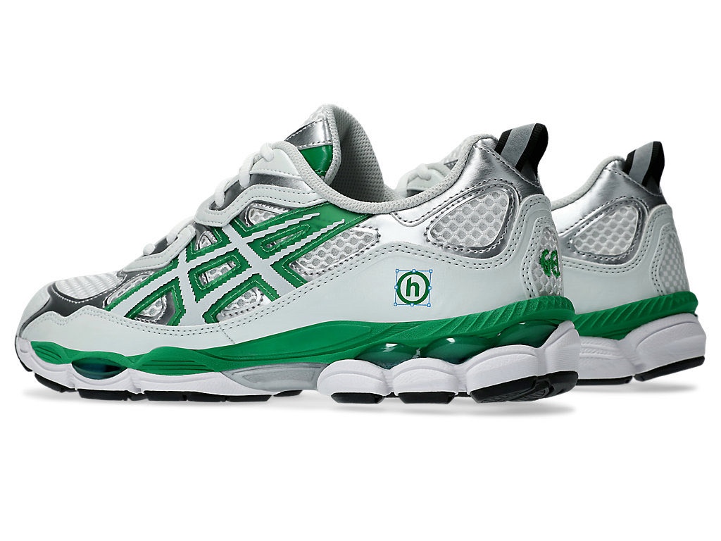此次双方将目光放在了 ASICS GEL-NYC 上,银白双色的鞋身加之绿色点缀,视觉效果十分醒目且非常契合 Hidden NY 的画风。