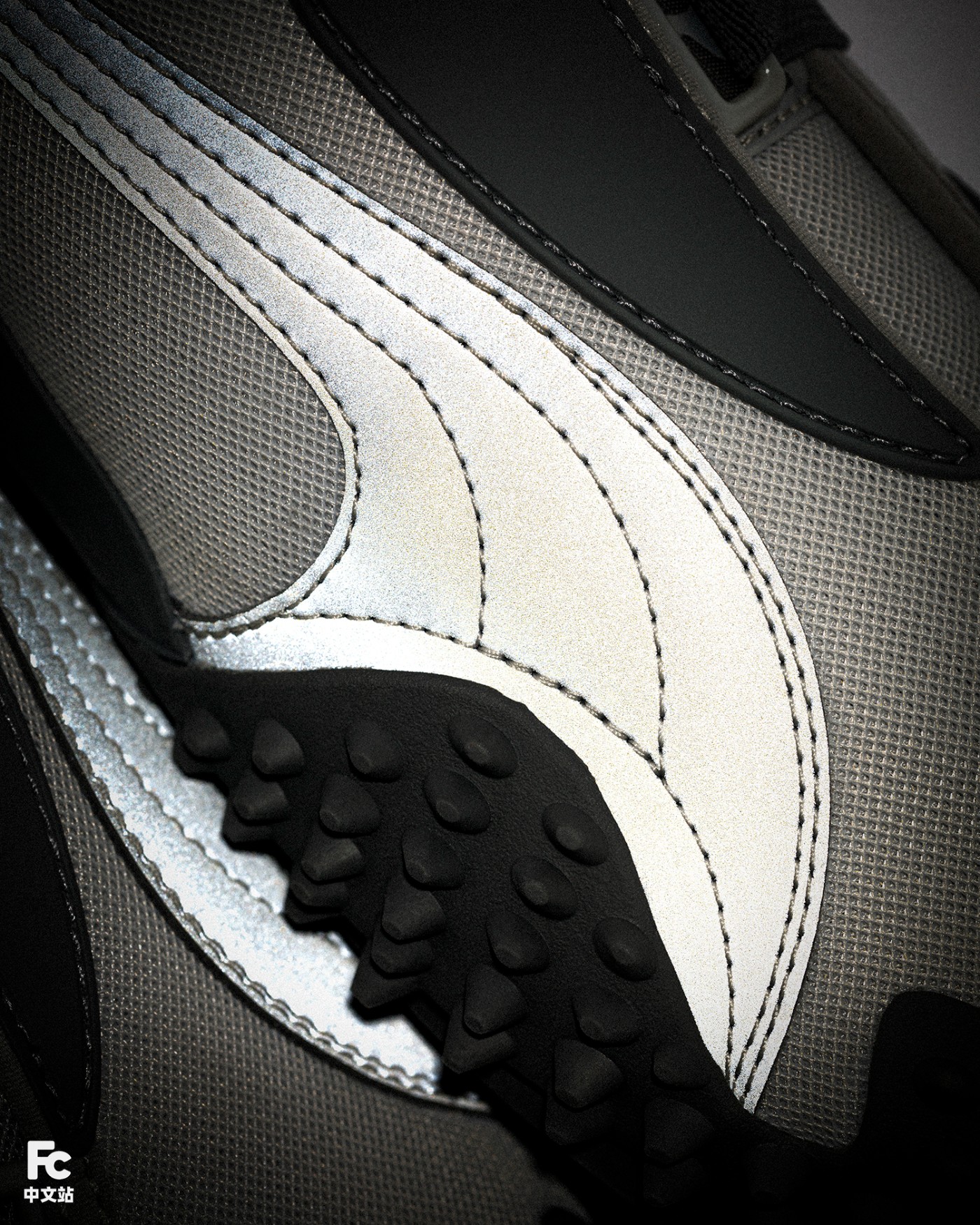 网眼鞋面和莱卡内里,搭配金属质感的银色 PUMA 跑道 LOGO 彰显出品牌标志性元素。