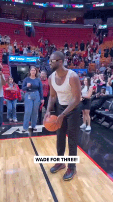 现场,韦德也是 “球瘾” 发作,脱下外套反手就是一记三分入网,不得不说,韦德在一众退役球星中,确实算身材保持不错的了。